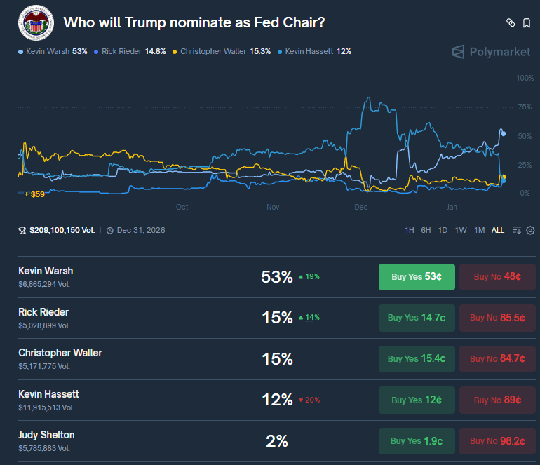美联储主席遴选动态与候选人政策主张 - 美联储主席遴选在最后关头出现变数,贝莱德全球固定收益首席投资官里克·里德尔在与当选总统特朗普的面试中表现“相当顺利”,成为领跑者之一 [1] - 在原头号热门凯文·哈塞特因白宫留任需求基本退出的背景下,预测市场Polymarket数据显示,里德尔获提名赔率近期显著上升 [1] - 财政部长贝森特暗示,特朗普计划在达沃斯论坛前后正式公布提名,以尽早消除市场不确定性 [7] 候选人里德尔的核心政策主张 - 货币政策方面,里德尔一贯主张美联储应将利率下调至约3%的“中性水平”,认为当前利率水平过高 [1][4] - 他警告称,若长期维持限制性利率,不仅会压制信贷市场,更可能导致经济增长“失速” [4] - 他倾向于比传统央行官员更早、更果断地放松政策,这与特朗普长期以来批评美联储“过度紧缩”的立场不谋而合 [3][4] - 在财政问题上,里德尔多次淡化市场对美国巨额政府赤字的担忧,认为全球对美国资产的强劲需求等结构性力量足以支撑债务扩张,赤字问题更易于管理 [1][5] - 在通胀问题上,他提出如果略高于目标的通胀率有助于稳定债务动态并维持就业,那么这种通胀并非不可接受 [1][5] - 虽然称美联储独立性“至关重要”,但他也与财政部长贝森特观点一致,认为央行在资产负债表的使用上应“更加创新” [4] 遴选的政治背景与候选人对比 - 美联储主席遴选正处于华盛顿政治风暴中心,现任主席鲍威尔因总部翻新项目言论收到司法部传唤,并反击称这是对其未迅速降息的政治报复 [6] - 参议院银行委员会成员汤姆·蒂利斯警告,在调查未决之前,任何美联储提名人都将面临最为严苛的审查 [6] - 与深陷政治泥潭的传统候选人不同,里德尔作为华尔街资深债券交易员远离政治是非,在参议院确认程序中被视为更容易过关的“安全选项” [6] - 随着哈塞特可能留任国家经济委员会主任,角逐已收窄为“三方博弈”:里德尔对阵前美联储理事凯文·沃什和现任理事克里斯托弗·沃勒 [6] - 沃什和沃勒拥有丰富的央行经验,代表着与里德尔市场导向背景相比更为传统的选择 [6] 影响决策的市场与经济环境 - 宏观数据在倒逼决策加速,本月发布的就业数据显示劳动力市场在2025年底已显疲态,薪资增长放缓 [7] - 选民对生活成本的焦虑正转化为中期选举的压力 [7] - 尽管美联储在2025年底连续三次降息,但决策者已暗示在看到更多数据前不急于再次行动 [7] - 市场普遍预测美联储1月议息会议将按兵不动 [7] - 特朗普积极会见候选人,里德尔在白宫的露面表明,特朗普政府可能正在权衡美国货币政策未来走向的传统和非传统路径 [7]