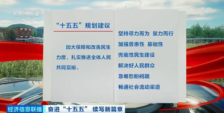 坚持尽力而为、量力而行,加强普惠性、基础性、兜底性民生建设,解决好人民群众急难愁盼问题,畅 通社会流动渠道,提高人民生活品质。 (央视财经《经济信息联播》)《"十五五"规划建议》提出,加大保障和改善民生力度,扎实推进全体 人民共同富裕。具体怎么干?来看梳理。 《"十五五"规划建议》提出,加大保障和改善民生力度,扎实推进全体人民共同富裕。 实现人民对美好生活的向往是中国式现代化的出发点和落脚点。 促进高质量充分就业、完善收入分配制度、办好人民满意的教育、健全社会保障体系、推动房地产高质 量发展、加快建设健康中国、促进人口高质量发展、稳步推进基本公共服务均等化。 转载请注明央视财经 编辑:王昕宇 ...