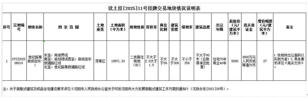 2025年度沈阳土拍“收官大戏”即将上演!“四年一遇”核心宅地