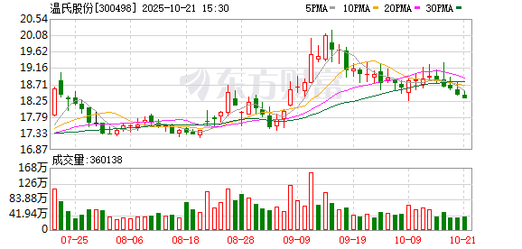 同时,公司还公布了前三季度利润分配预案。该预案显示,截至2025年9月30日,公司合并报表范围内累计可供分配利润 240.24亿元,母公司累计可供分配利润295.01亿元(以上数据未经审计)。为了更好回报股东,在兼顾公司未来业务发展 及生产经营的资金需求的前提下,公司拟向全体股东每10股派发现金3元(含税),以截至2025年9月30日的总股本测算, 合计派发现金19.94亿元(含税)。 (文章来源:证券时报) 温氏股份(300498)最新公告。 10月21日晚间,温氏股份(300498)披露了三季度业绩。今年前三季度,公司实现营业收入757.88亿元,同比减少 0.03%;实现归母净利润52.56亿元,同比减少18.29%。第三季度,公司实现营业收入259.37亿元,同比减少9.76%;实现 归母净利润17.81亿元,同比减少65.02%。 | | 本报告期 | 上年同期 | | 本报告期 比上年同 期增減 | 年初全报 告期末 | 上年同期 | | 年初全报 告期末比 上年同期 | | --- | --- | --- | --- | --- | --- | --- | --- | --- | | | | | ...