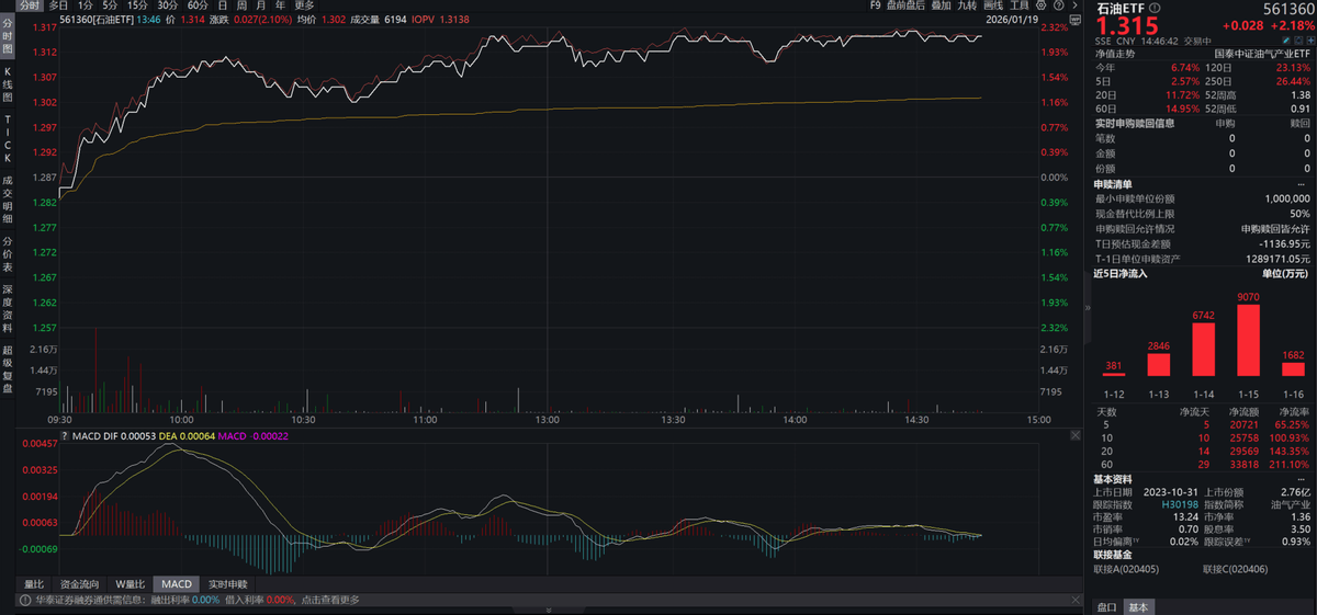 地缘冲突催化油价景气,石油ETF(561360)涨超2%,资金持续布局