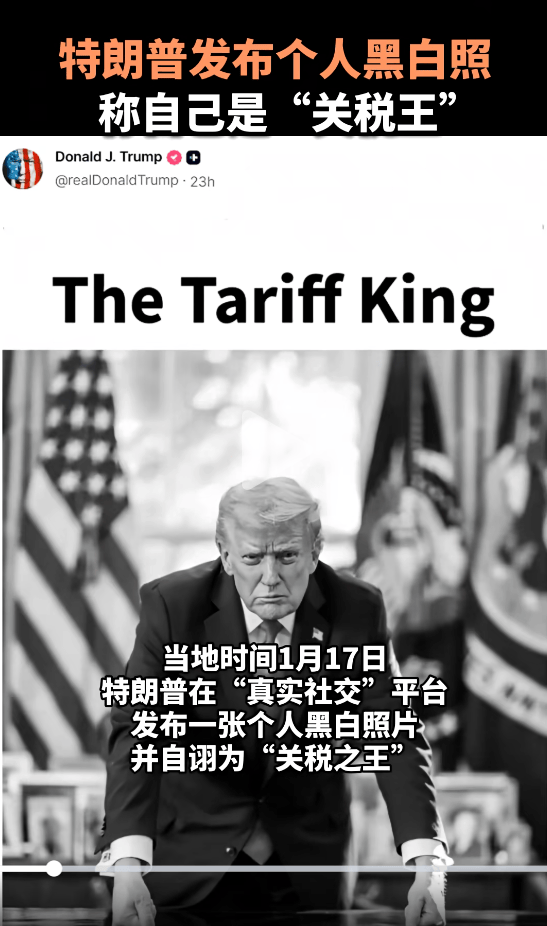 特朗普发黑白照:我是关税之王!他威胁欧洲多国:得不到格陵兰岛 就征关税;欧洲议会议员呼吁:用反胁迫工具回应