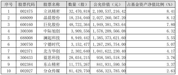 基金持仓变动 - 兴全合润混合基金大力加仓AI算力领域,中际旭创、澜起科技、北方华创、东山精密新进前十大重仓股,分别为光模块、高速互连芯片、半导体设备、PCB细分赛道龙头企业 [1] - 兴全合润混合基金前三大重仓股为立讯精密、晶晨股份、巨化股份,占基金资产净值比例分别为8.41%、8.12%、7.80% [2] - 兴全合宜基金三季度增持信达生物、巨化股份、立讯精密、诺诚健华,中际旭创、澜起科技、东山精密、宁德时代新进前十大重仓股 [3] - 兴全合宜基金前三大重仓股为信达生物、中际旭创、巨化股份,占基金资产净值比例分别为7.54%、5.58%、5.40% [4] 基金业绩与规模 - 兴全合润混合A份额三季度上涨36.16%,大幅超过13.84%的同期业绩比较基准收益率,今年以来涨幅为39.63%,在4503只同类产品中排名前35% [2] - 兴全合润规模在三季度基金份额减少的情况下环比增加31.27亿元,达到249.82亿元,股票仓位占比90.28% [3] - 兴全合宜A份额三季度上涨30.89%,超过12.57%的同期业绩比较基准收益率,规模环比增长27亿元至186.79亿元,股票仓位占比91.21% [5] 市场观点与行业趋势 - AI核心主线涨速过快导致市场分歧,以光模块和PCB为代表的海外算力板块是驱动市场上涨的主要力量,但投资者对需求增长的可持续性及技术路线迭代存在疑虑 [5] - 国产算力突破带动半导体设备出货增加,储能需求落地叠加固态电池工艺进步逆转新能源行业下行趋势,创新药研发效率优势支撑长期崛起趋势 [6] - 港股市场三季度表现相对逊色,受港元汇率和拆借利率大幅波动影响,电商和新能源汽车领域竞争加剧引发盈利水平下滑担忧 [6]