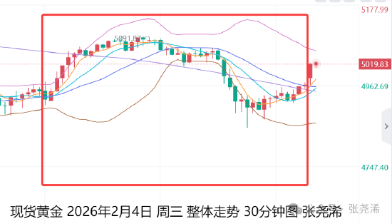 黄金价格走势与市场表现 - 2月4日,国际黄金价格开盘于4964.16美元/盎司,日内最高触及5091.72美元,最低下探至4854.61美元,最终收于4964.45美元,日振幅达237.11美元,较前一交易日收盘价4935.80美元上涨28.65美元,涨幅0.58% [1] - 2月5日,黄金开盘延续隔夜回升走势,看涨买盘动力依然强劲 [3] 影响价格的核心驱动因素 - **地缘政治**:地缘局势的反转与反复对市场影响逐渐减弱,但产生的不确定性间接利好金价 [3] - **宏观经济数据**: - 美国1月标普全球服务业PMI终值及ISM非制造业PMI好于预期,对金价构成压力 [3] - 美国ADP就业人数不及预期,显示劳动力市场继续放缓,为金价提供支撑 [3] - 市场预期当周初请失业金人数数据将利好金价,且因政府部分停摆,1月非农数据推迟发布,ADP数据产生的预期影响将持续利好金价前景 [5] - **货币政策**:本周美联储官员暗示年内仍有较大降息空间,公布的ADP数据和政府停摆提升了降息前景,利好金价 [5] - **市场结构**:当前流动风险和历史高点的获利了结调整已基本出尽 [5] 技术分析与后市展望 - **长期趋势(月线)**:金价2月虽出现跳水,但在触及1月份突破的上升趋势线支撑后止跌反弹,暗示新的牛市空间仍然有效,后市有望在该趋势支撑上方调整后再度走强 [6] - **中期趋势(周线)**:金价上周冲高回落收倒垂线,本周先跌后涨,若本周收出触底回升形态,则后市即使不继续冲高,也将维持高位震荡,看涨概率远超看空 [7] - **短期趋势(日线)**:金价目前维持在布林带中轨及均线系统上方,多头占据优势,操作上可考虑回撤至中轨或30日均线支撑做多,或等待价格收稳于10日均线上方后跟进看涨 [8] - **关键价位**: - 黄金下方支撑关注4940美元、4890美元及4760美元附近;上方阻力关注5120美元及5220美元附近 [9] - 白银下方支撑关注88.20美元及86.10美元;上方阻力关注94.30美元及97.40美元 [9] 交易策略与操作建议 - 整体操作策略仍偏向于低多看涨为主 [5] - 具体操作上,可关注金价回撤至日线中轨或30日均线支撑时做多,或等待价格收于10日均线上方、走势稳健转强后跟进看涨 [8] - 日内短线操作应重点关注4小时及1小时等更小周期图表 [8]