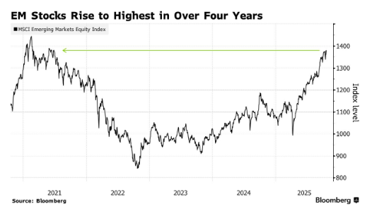 特朗普释放关税缓和信号 新兴市场股市创四年新高