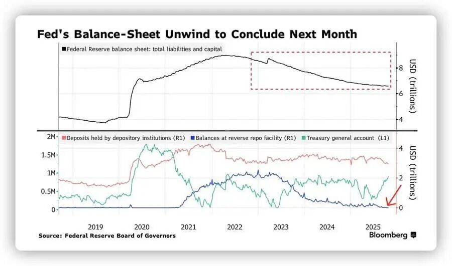 来源:市场资讯 (来源:吴说) 作者:SoSoValue 社区研究员 ET(Agarwood Capital) 原文链接:https://sosovalue.com/zh/sosocholar/post/1985893440846393346 声明:本文为转载内容,读者可通过原文链接获得更多信息。如作者对转载形式有任何异议,请联系我们,我们将按照作者要求进行 修改。转载仅用于信息分享,不构成任何投资建议,不代表吴说观点与立场。 一、前言 当投资者仍在为比特币的下跌寻找情绪与技术面的解释时,真正的答案已悄然写进美国金融系统的账本:美元流动性正遭遇一次结构 性紧缩。具体表现为 ⦁ 财政部 TGA 账户余额接近 1 万亿美元,大量吸走市场流动性; ⦁ 短端资金市场压力陡升,SOFR–FDTR 利差一度扩大至 +30bp; ⦁ 美联储被迫重启临时回购操作(Overnight Repo),向市场注入近 300 亿美元流动性——这是自2019年回购危机以来首次。 这场流动性"真空"并非偶然,核心是政府关门导致。财政部在预算僵局与潜在政府关门风险下提前"吸金备粮",大量发债将现金锁入 TGA 账户,直接抽走银行体系准备金, ...