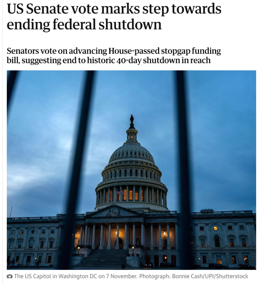 【环球财经】政府 “停摆”第41天 美参议院正式通过临时拨款法案