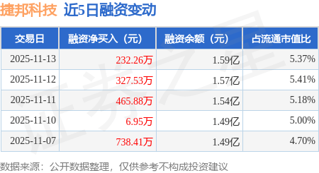 捷邦科技:11月13日融资净买入232.26万元,连续3日累计净买入1025.66万元