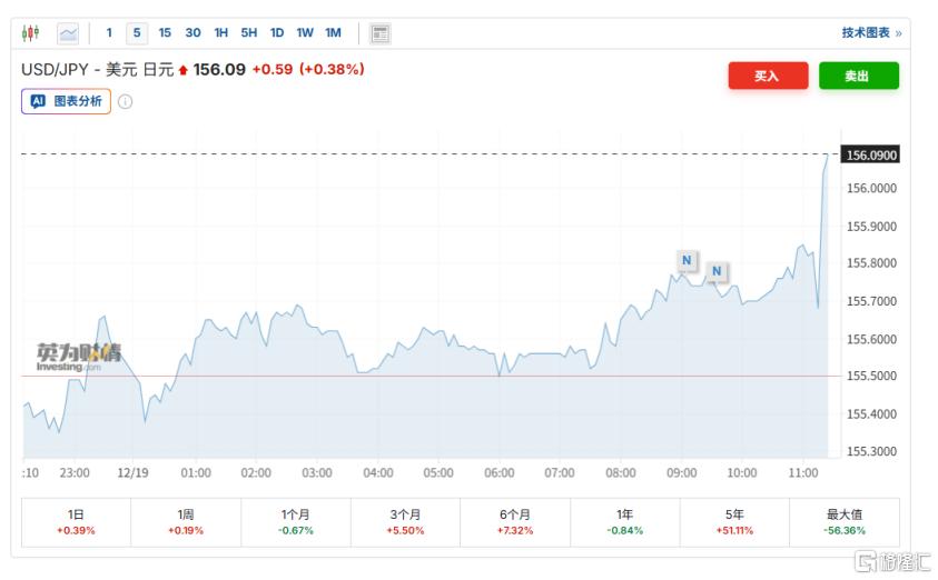 一场全球金融风暴来袭! 日本央行将基准利率从0.5%上调至0.75%,符合市场预期。 这也是日本近30年来最高的政策利率水平。 不过,早在这个月初日本行长植田和男已经在讲话中"预告"加息,但它仍像一颗重磅炸弹,搅动了全球市场。 受此影响,美元兑日元突破156,日内涨0.38%。 日经225指数小幅走高,现涨1.52%。 利率水平创30年来新高 根据声明,日本央行以全票通过加息25个基点,将短期利率上调至0.75%,利率水平创30年来新高。 这也是2025年1月以后,日本央行11个月来再次进行加息。 日本央行指出,日本经济已温和复苏,但仍存在一些疲软迹象,劳动力市场状况持续紧张,企业利润总体上将维持在高 位。 鉴于上述情形,日本央行预计,从可持续、稳定实现2%价格稳定目标的角度出发,适度调整货币宽松程度是适当的。 在政策利率调整后,实际利率预计仍将保持显著的负值,宽松的金融环境将继续有力支撑经济活动。 至于未来的货币政策,鉴于当前实际利率处于显著偏低水平,若2025年10月展望报告所示的经济活动与价格前景得以实 现,日本央行将随着经济活动和物价的改善,继续上调政策利率并调整货币宽松程度。 围绕2%的价格稳定目标 ...