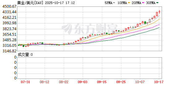 黄金价格表现 - 国际金价持续攀升,17日每盎司价格超过4300美元 [3] - 纽约商品交易所12月交割的黄金期货价格盘中一度涨至每盎司4392美元,创历史新高 [3] - 国际现货黄金交易17日盘中一度涨至接近每盎司4380美元,同样创下新高 [3] 价格上涨驱动因素 - 贸易紧张局势下多国央行买入黄金是推动价格上涨的因素之一 [1] - 市场对美联储近期可能降息的预期上升是另一重要影响因素 [1]