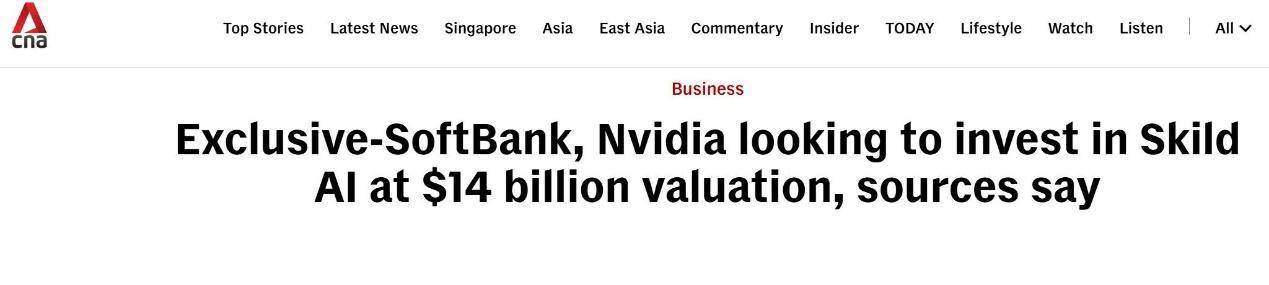 软银与英伟达拟联合投资超10亿美元,推动Skild AI估值升至140亿美元