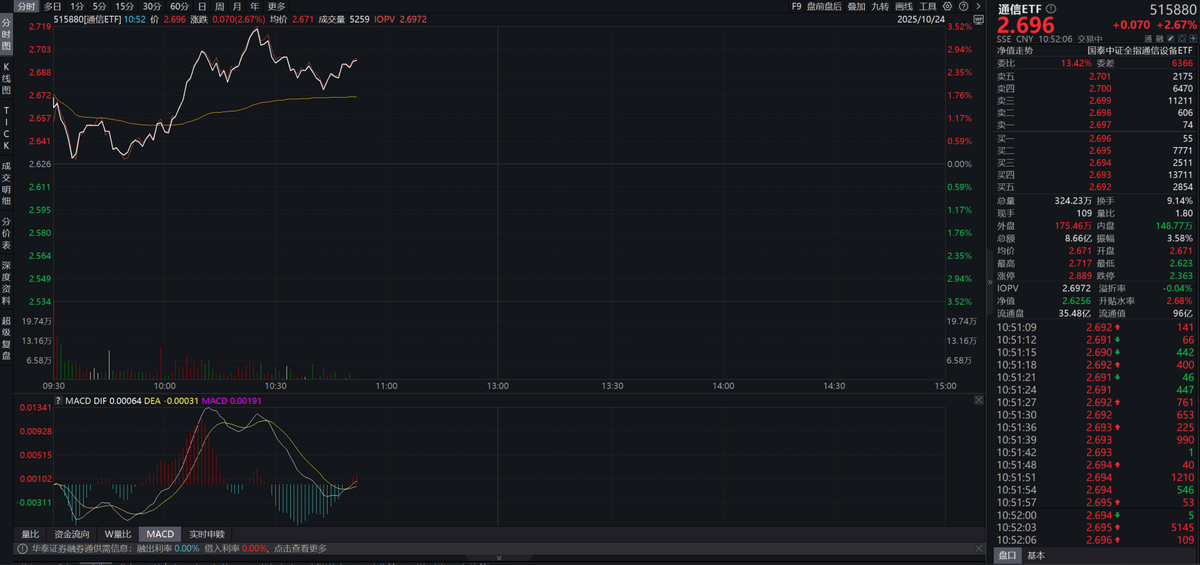 量子通信取得新突破,通信ETF(515880)涨超2%,光模块占比近50%