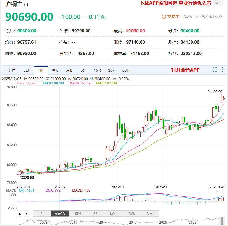 下方支撑较强 沪铜延续强势【12月5日SHFE市场收盘评论】