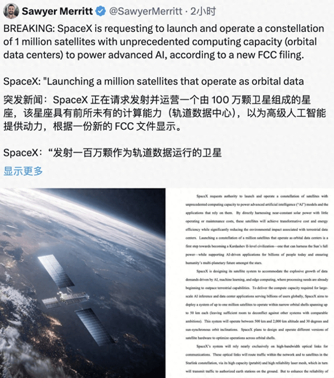 马斯克不“装”了?SpaceX申请部署100万颗卫星,太空“争夺战”已打响