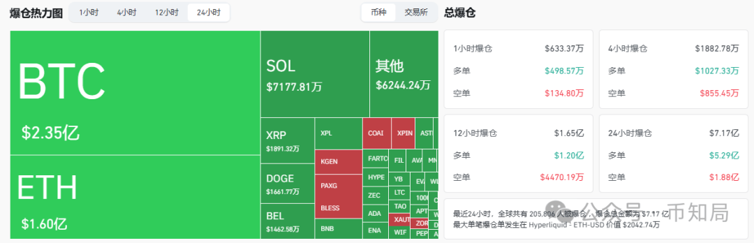 市场爆仓概况 - 过去24小时全球爆仓总金额达7.17亿美元,涉及205,806人 [1] - 最大单笔爆仓单发生在Hyperliquid-ETH-USD,价值2042.74万美元 [1] - 24小时内多单爆仓金额为5.29亿美元,空单爆仓金额为1.88亿美元 [1] - 12小时爆仓金额为1.65亿美元,4小时爆仓金额为1882.78万美元,1小时爆仓金额为633.37万美元 [1] 主要加密货币爆仓分布 - 比特币24小时爆仓金额为7177.81万美元 [1] - 以太坊24小时爆仓金额为1.60亿美元 [1] - SOL 24小时爆仓金额为2.35亿美元 [1] - XRP 24小时爆仓金额为1891.32万美元,DOGE 24小时爆仓金额为1661.77万美元 [1] 比特币市场动态 - 比特币链上数据显示换手率上升,市场存在恐慌抛压,主要来自短期亏损者离场 [1] - 长期持有者未出现明显动作,市场底部筹码较为稳固 [2] - 在104,500-111,000美元价格区间堆积了201.5万枚比特币,在93,500-98,500美元区间堆积了118.4万枚比特币 [2] - 比特币日线刚开始下探,下方唯一支撑在105,700美元附近 [4] 以太坊行情分析 - 以太坊今日短线压力位在3990美元和4060美元 [8] - 建议在3990美元或4060美元位置试空,止损位设置在4100美元上方 [8] - Bitmine自1011暴跌起已买入46.2万颗ETH,价值18.28亿美元 [12] BNB行情分析 - BNB今日反弹需留意1163美元位置,站稳此位置上方1-2小时级别才开始反弹 [7] - 上方压力位在1195美元、1222美元和1248美元附近 [7] - 若无法站上1163美元,下方支撑位在1121美元、1091美元和1057美元附近 [7] SOL行情分析 - SOL今日压力位在192美元至195美元之间,突破195美元才会开始反弹 [10] - 建议在压力位布空,止损位放在200美元上方 [10] - 下方短线支撑在179美元,日线大级别支撑在164美元 [10] 一级与二级市场对比 - 二级市场回本速度慢,一级市场受影响不大,每天都有Alpha项目翻倍 [4] - 近期翻倍项目包括$LAB、$XPIN、$KGEN、$ENAA等 [4] - 币安的专属meme rush和four平台对市场分流严重 [4] Meme币市场状况 - BSC链上Meme币市场"淤积"严重,项目众多且拥挤不堪 [12] - 市场存在"四大天王"、"四小龙"、"四小虎"等Meme币序列,新项目"比心"开启了"四小猫"序列 [12] - 平均买入"四大天王+四小龙+四小虎"几乎必亏,建议等待新Meme币的第一波机会 [13] 个别代币分析 - $ARPA日线呈现多方炮形态,现价0.023美元,建议买入,止损位0.019美元,第一止盈位0.027美元 [14] - $BAB是币安灵魂绑定token的Meme币,由新CTO团队接管,运营有章法,市场认可潜力大 [15] - $MKR是DeFi老将,DAI稳定币的"母体",受益于ETH生态TVL达470亿美元,MakerDAO推"终局计划"扩展DAI至多链 [15] - $MKR具有回购销毁机制,今年已销毁1.3亿美元 [15]