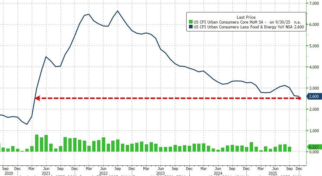 美国12月核心消费者价格指数同比上涨2.6%,低于预期