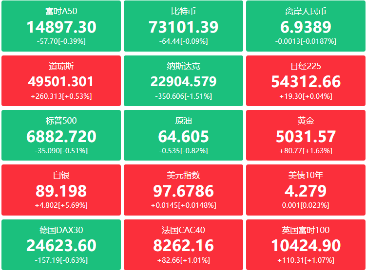 美股市场整体表现 - 当地时间2月4日,美股三大股指收盘涨跌不一,道指涨0.53%报49501.3点,标普500指数跌0.51%报6882.72点,纳指跌1.51%报22904.58点,纳指连续第二天跌超1% [1][4] - 受美国“小非农”就业数据疲软、AI芯片需求波动及美联储降息节奏不确定性影响,投资者对成长股估值与经济韧性信心承压,风险偏好趋于谨慎 [2] 大型科技股与芯片股表现 - 大型科技股多数下跌,万得美国科技七巨头指数下跌1.32% [6] - 个股方面,特斯拉跌近4%,脸书、英伟达跌超3%,亚马逊跌逾2%,谷歌跌近2%,苹果涨超2%,微软涨0.72% [6] - 芯片股表现疲软,费城半导体指数跌4.36% [7] - 超威半导体(AMD)跌超17%,收跌17.31%,创2017年5月以来最大单日跌幅 [2][7][9] - 美光科技跌逾9%,收跌9.55% [2][9] 超威半导体(AMD)财报与市场反应 - AMD发布的2025财年第四财季报告显示,去年四季度营收超百亿美元创新高、保持30%以上同比增速,EPS盈利增长放缓但较分析师预期高近16% [9] - 部分分析师认为,虽然AMD公布了超预期的营收利润表现,但一季度指引不及预期,市场期待AMD在AI加速器上有更快的份额侵蚀与更高的短期出货量,任何相对保守的节奏都会被视作“不及预期” [9] - 受AMD大跌影响,AI应用股AppLovin、Palantir均跌超10% [9] - “存储四巨头”也集体下跌,闪迪跌15.95% [9] 中概股表现 - 中概股普遍下跌,纳斯达克中国金龙指数跌1.95% [9] - 个股方面,金山云跌超7%,万国数据跌近7%,哔哩哔哩跌超6%,世纪互联跌逾5%,网易跌超5% [9] - 涨幅方面,晶科能源涨超8%,百胜中国涨逾4%,再鼎医药涨超3% [9] 光伏太阳能板块表现 - 受“SpaceX团队考察中国光伏产业链”的消息影响,美股光伏板块隔夜全线大涨 [11] - 微型逆变器制造商Enphase Energy涨38.60%,SolarEdge涨13.14%,光伏组件龙头晶科能源涨8.66% [11] - 太空光伏成为近期市场热点,这一前沿领域融合了商业航天与新能源,核心在于突破地面光伏的应用场景限制,在太空轨道、月球等地外环境中借助太阳能光伏技术获取能源 [14] - 中信证券研报分析称,太空光伏正在进入规模化部署的前夜,其爆发源于“太空算力+AI”的新需求及全球正在上演的“低轨轨道资源争夺”,是一条清晰的“轨道→通信→算力”演进链条 [14] 美国宏观经济数据 - 2026年1月美国ADP私营部门就业岗位仅增加2.2万个,远低于市场普遍预期的约4.6万个,前值也经修订下调至3.7万个 [16] - 在招聘乏善可陈的一个月里,健康服务行业表现突出,引领放缓的是制造业、专业/商业服务行业,以及大型企业,制造业自2024年3月以来每月都有工作岗位流失 [16] - 弱于预期的私营部门就业增长表明,1月劳动力市场仍在降温 [16] - 由于联邦政府部分停摆,美国劳工统计局(BLS)的官方就业数据发布被推迟,因此ADP数据可能成为本周能最完整反映1月就业状况的指标 [16] - 市场分析预计,截至2025年3月的一年内就业增长远低于最初预估 [16]