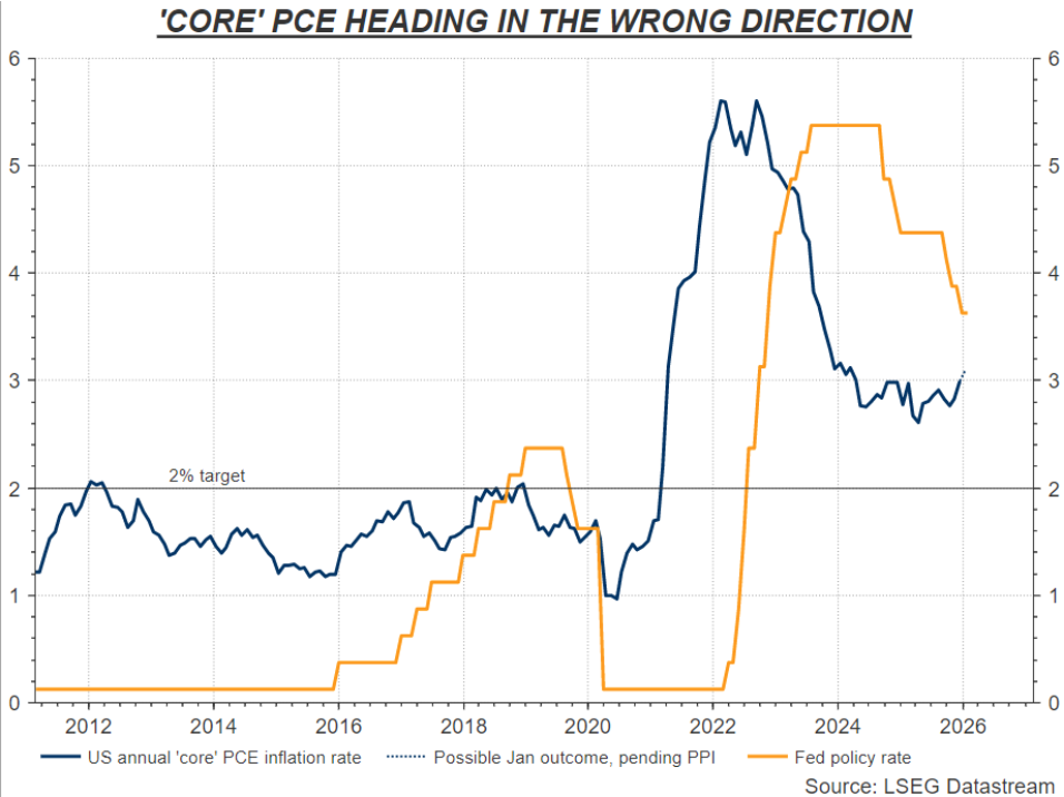 美联储政策信号与通胀前景 - 美联储内部对进一步宽松存在强烈抵制 亚特兰大联储主席博斯蒂克主张维持“适度紧缩”的政策立场 并警告如果通胀再次走高 加息必须摆上桌面 [2] - 市场已定价美联储今年将再降息近60个基点 但博斯蒂克的鹰派言论与通胀数据令这一前景面临挑战 [3] 核心通胀指标动态 - 12月核心个人消费支出通胀攀升至3% 高于预期 较美联储2%的目标高出1个百分点 [5] - 基于1月消费者物价指数分项数据 1月核心个人消费支出读数预计至少与12月持平 在1月生产者价格指数数据公布后 预估可能进一步升至3.1% [5] - 核心个人消费支出通胀已连续近五年高于美联储目标 [8] 影响通胀的潜在因素 - 去年关税上调对商品价格的传导效应可能滞后显现 尽管最高法院驳回了紧急关税 但特朗普声称将全面重启 可能使价格传导过程拉长 [7] - 有观点认为 人工智能驱动的生产率提升最终会带来通缩效应 但历史表明 科技投资热潮期间实际利率往往会上升 以应对经济过热 [8] 对当前政策立场的评估 - 对于当前3.62%的联邦基金利率是否处于紧缩区间存在分歧 明尼阿波利斯联储主席卡什卡利认为利率已基本处于中性水平 [8] - 根据纽约联储主席威廉姆斯参与撰写的模型测算 当前实际联邦基金利率较中性利率预估低约50至100个基点 [8][9]