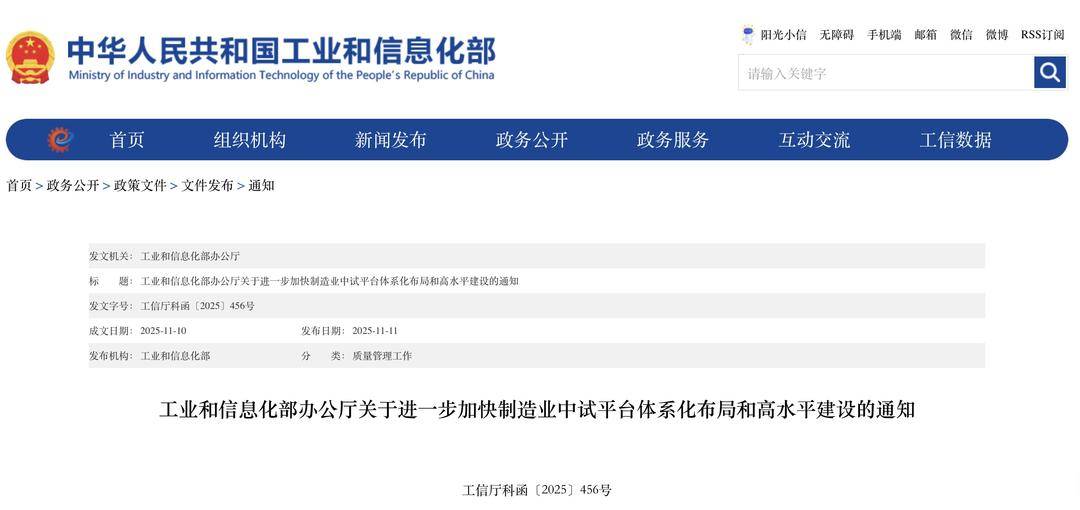 政策核心与目标 - 工业和信息化部发布通知 旨在加快制造业中试平台体系化布局和高水平建设[1][3] - 政策核心目标是推进新型工业化 统筹推进中试平台做优做强[3] - 到2027年底 目标为高水平中试平台力量壮大 现代化中试平台体系基本建立 全国制造业中试服务网络初步形成[3] 中试环节的战略重要性 - 中试是连接实验室创新与产业化生产的关键环节 可打通科技成果转化"最后一公里"[3] - 经过中试的科技成果产业化成功率可达80%以上 未经过中试的成功率仅为30%左右[3] - 政策旨在强化中试平台的桥梁作用 推动科技创新与产业创新深度融合[3] 平台建设重点任务与路径 - 采用"做强一批、激活一批、补齐一批"的推进思路[3] - "做强"路径为引导平台按"储备中试平台—重点培育中试平台—国家级制造业中试平台"向更高水平迈进[3] - "激活"路径为聚焦具备公共服务属性但能力有待提升的平台 通过多样化方式增强其内生动力和竞争力[3] 关键行业领域布局 - "补齐"方面聚焦人工智能、人形机器人、量子科技、清洁低碳氢、生物医药、工业母机、仪器仪表等关键行业领域[4] - 布局领域还包括重大技术装备、新材料、信息技术等关系未来发展、关乎产业安全的领域[4] - 同等条件下 工业和信息化部优先支持补齐领域的中试平台纳入重点培育管理[4] 具体建设指引与领域 - 政策发布了《制造业中试平台建设指引(2025版)》和《制造业中试平台重点方向建设要点(2025版)》[4] - 指导地方围绕原材料工业、装备制造、消费品工业、信息技术、新兴和未来产业、共性需求等6个关键领域布局[4] - 具体涵盖37个行业重点方向 以布局建设产业发展急需的中试平台[4]