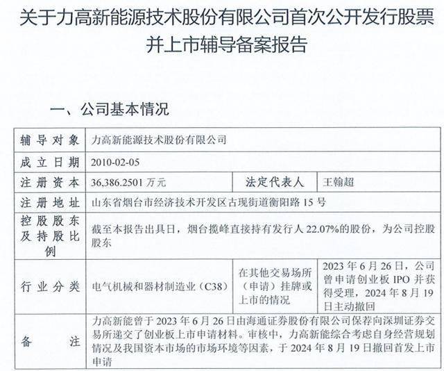 力高新能累计完成多轮融资,烟台揽峰股权投资合伙企业(有限合伙)为第一大控股股东,持股 30.6%。 王翰超为合肥揽峰执行事务合伙人深圳揽峰100%股东,为烟台望徽、烟台财高的执行事务合伙人。王 翰超通过前述主体间接控制力高新能39.58%股权的表决权,系力高新能的实际控制人。 王翰超,出生于1976年4月,中国国籍,北京大学理学学士,无境外永久居留权。1999年7月至1999年12 月,就职于上海大唐移动通信设备有限公司;2000年1月至2008年3月,担任华为技术有限公司代表处副 代表;2008年4月至2015年3月,担任华为技术有限公司全球交通行业系统部部长;2015年4月至今,担 任江苏国泰华汇实业发展有限公司总经理、董事;2016年7月至今,历任力高有限、力高新能董事、董 事长。 瑞财经 王敏 11月11日,力高新能源技术股份有限公司(以下简称"力高新能")在山东证监局启动IPO辅 导备案,辅导机构为中信建投证券。 据悉,力高新能曾于2023年6月26日由海通证券保荐向深交所递交了创业板上市申请材料。审核中,力 高新能综合考虑自身经营规划情况及我国资本市场的市场环境等因素,于2024年8月19日撤回首 ...