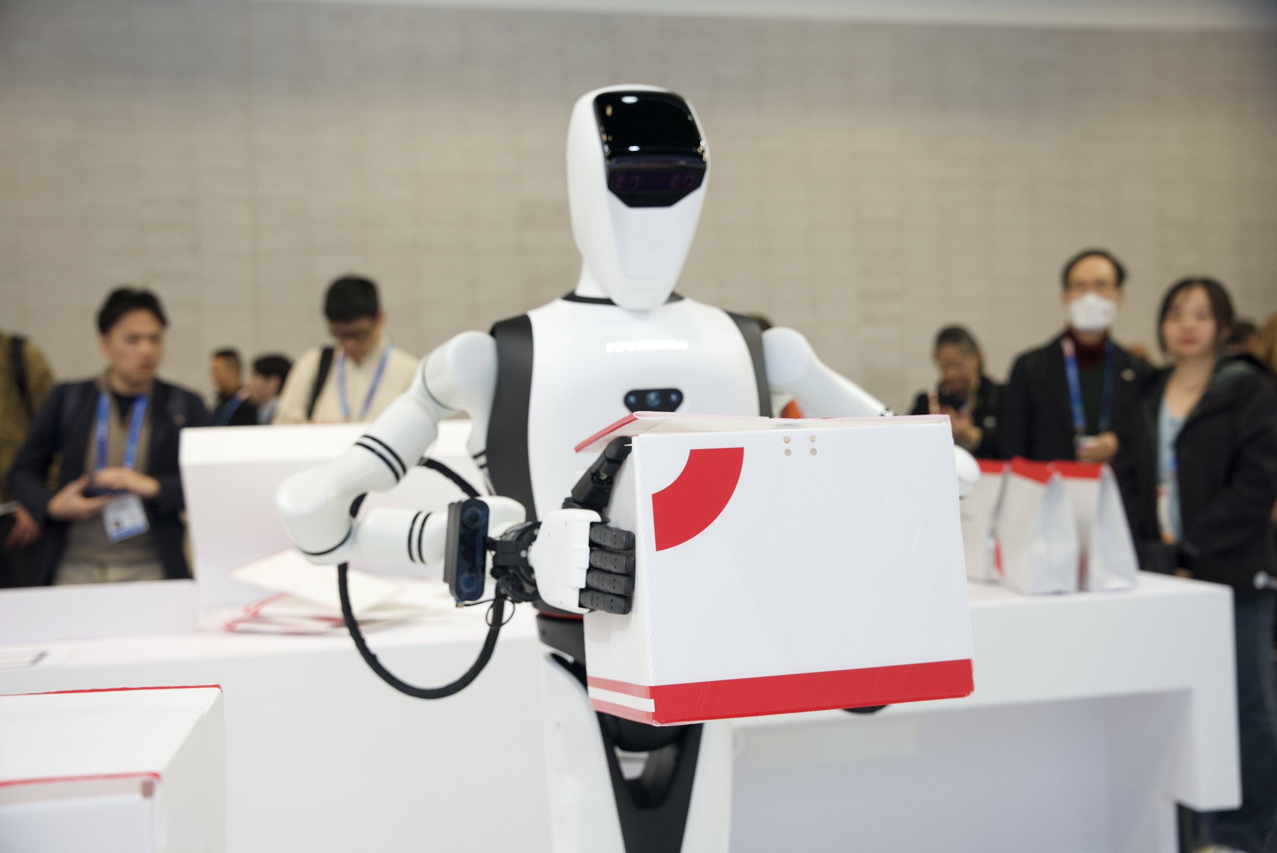 速腾聚创展出全球首款AI机器人“配送小哥”,现场演示自主打包拆包操作|最前线