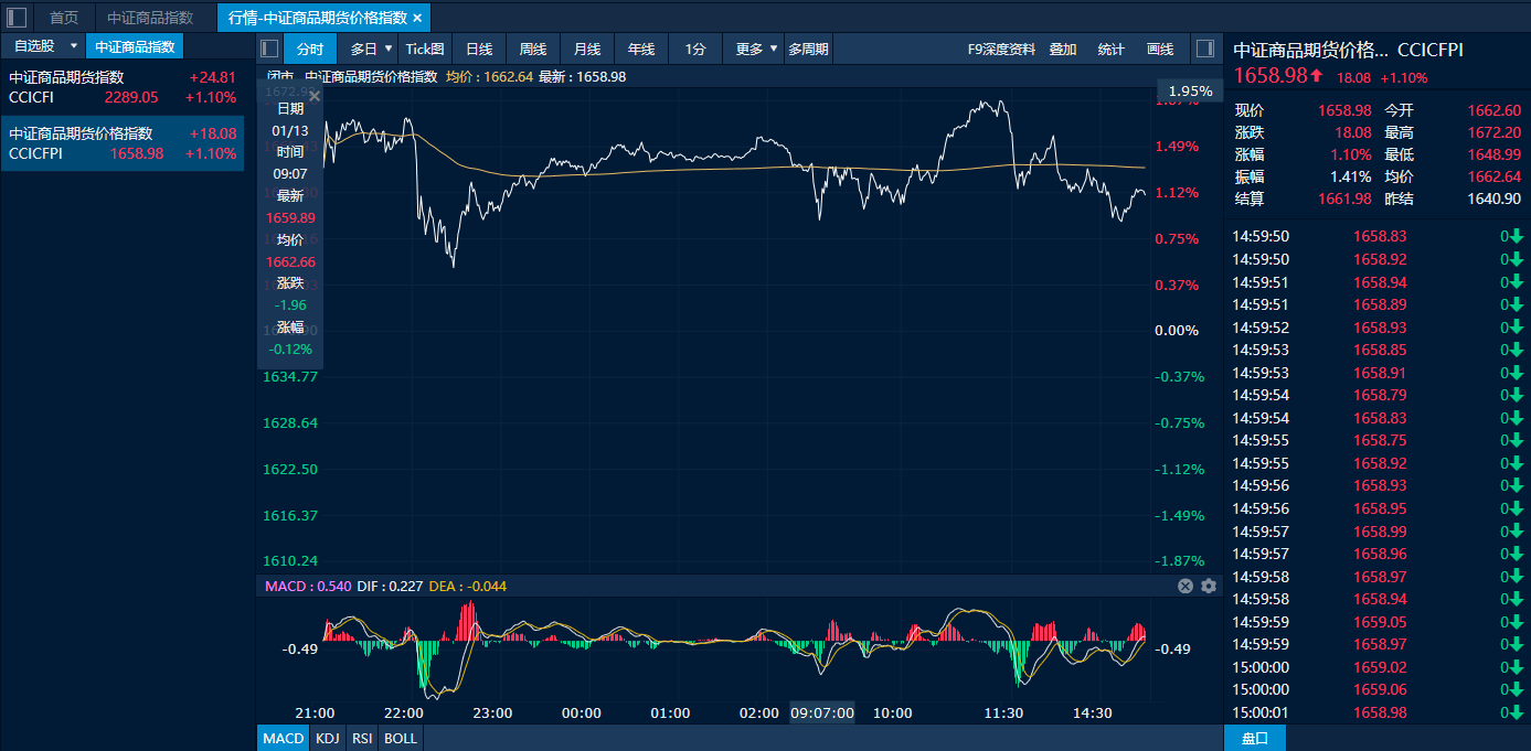国内商品期货市场1月13日行情综述 - 市场整体上涨:中证商品期货价格指数收报1658.98点,较前一交易日上涨18.08点,涨幅1.10%;中证商品期货指数收报2289.05点,较前一交易日上涨24.81点,涨幅1.10% [1] - 主要上涨品种:碳酸锂主力合约涨超7%;沪银主力合约涨超5%;沪锡主力合约涨超4%;SC原油主力合约涨超2%;液化气、PVC、LU、苹果、塑料、棕榈油、棉花、沪金主力合约涨超1% [1] - 主要下跌品种:集运欧线、钯主力合约跌超5%;多晶硅主力合约跌超4%;铂、玻璃主力合约跌超3%;烧碱、焦煤、沪镍、氧化铝主力合约跌超2%;双胶纸、工业硅、乙二醇、鸡蛋、纯碱、红枣、焦炭主力合约跌超1% [1] 碳酸锂市场表现与驱动因素 - 价格表现强势:碳酸锂主力合约涨超7%,盘中再度封板涨停 [1][2] - 需求端支撑稳健:动力领域需求受益于国补提前落地、购置税政策托底等政策前置;储能需求平稳增长,国内项目招标火热;锂电池出口退税政策将于4月1日下调,引发行业“抢出口”效应,对冲消费淡季影响 [2] - 供应与库存情况:锂盐厂开工率升至较高水平,但下游需求乐观,行业库存处于低位 [2] 沪锡市场表现与驱动因素 - 价格创近期新高:沪锡主力合约涨超4%,盘中一度涨超8%,最高触及39.5万元/吨,追平2022年3月创下的历史高点 [1][2][3] - 上涨驱动因素:受隔夜海外伦锡大涨超5%带动;受益于金属市场普遍的流动性宽松、供应收紧和需求乐观预期;锡矿供应不足困扰国内主要精炼锡产地的开工积极性 [2][3] - 潜在制约因素:锡下游消费淡季特征明显,高锡价对终端采购抑制作用明显;有机构判断春节前后锡价冲涨或形成年度顶部区间 [3] 贵金属与铂族金属市场分化 - 金银价格强势:沪银主力合约涨超5%,沪金主力合约涨超1%;金银价格在夜盘时段双双刷新历史新高 [1][2][5] - 铂钯价格大幅回落:铂、钯主力合约分别跌超3%和5% [1][5] - 铂钯下跌原因:获利回吐以及交易所加强风控措施影响;广期所自1月13日结算时起,将铂、钯期货合约涨跌停板幅度调整为16%,交易保证金标准调整为18% [5] - 基本面展望差异:从2026年供需平衡表来看,铂金总体呈现紧平衡格局,钯金则由过去十年的供需缺口转向供给过剩格局,铂金较钯金具有更强的向上驱动 [5] 集运欧线市场表现 - 价格显著下跌:集运欧线主力合约收跌5.45% [1][4] - 下跌原因分析:“抢运”预期尚未有效传导至现货运价,支撑情绪降温;市场重新关注节后偏弱的需求和可能通航的预期 [4] - 现货运价情况:截至2026年1月12日,上海出口集装箱结算运价指数(欧洲航线)报1956.39点,与上期相比涨8.9% [4] - 后市多空因素交织:出口退税退坡可能引发阶段性集中出货,短期或对运价形成支撑,但传导力度与持续性需观察;传统春节后运价回调趋势可能因前置货量支撑而缓和,但需求提前释放对2026年二季度及之后货量构成潜在压力;需关注北欧寒潮对港口运营的影响 [4] 其他板块品种表现 - 化工板块多数反弹:因中东局势不稳继续支持油价震荡回升,进而抬高化工品成本支撑;液化气、PVC、LU(低硫燃料油)、塑料主力合约均涨超1% [1][3] - 部分品种显著下跌:多晶硅主力合约跌超4%;工业硅主力合约跌超1% [1][2]