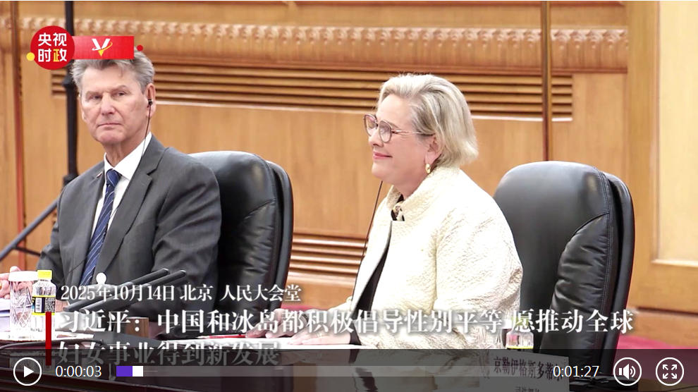 习近平:中国和冰岛都积极倡导性别平等 愿推动全球妇女事业得到新发展