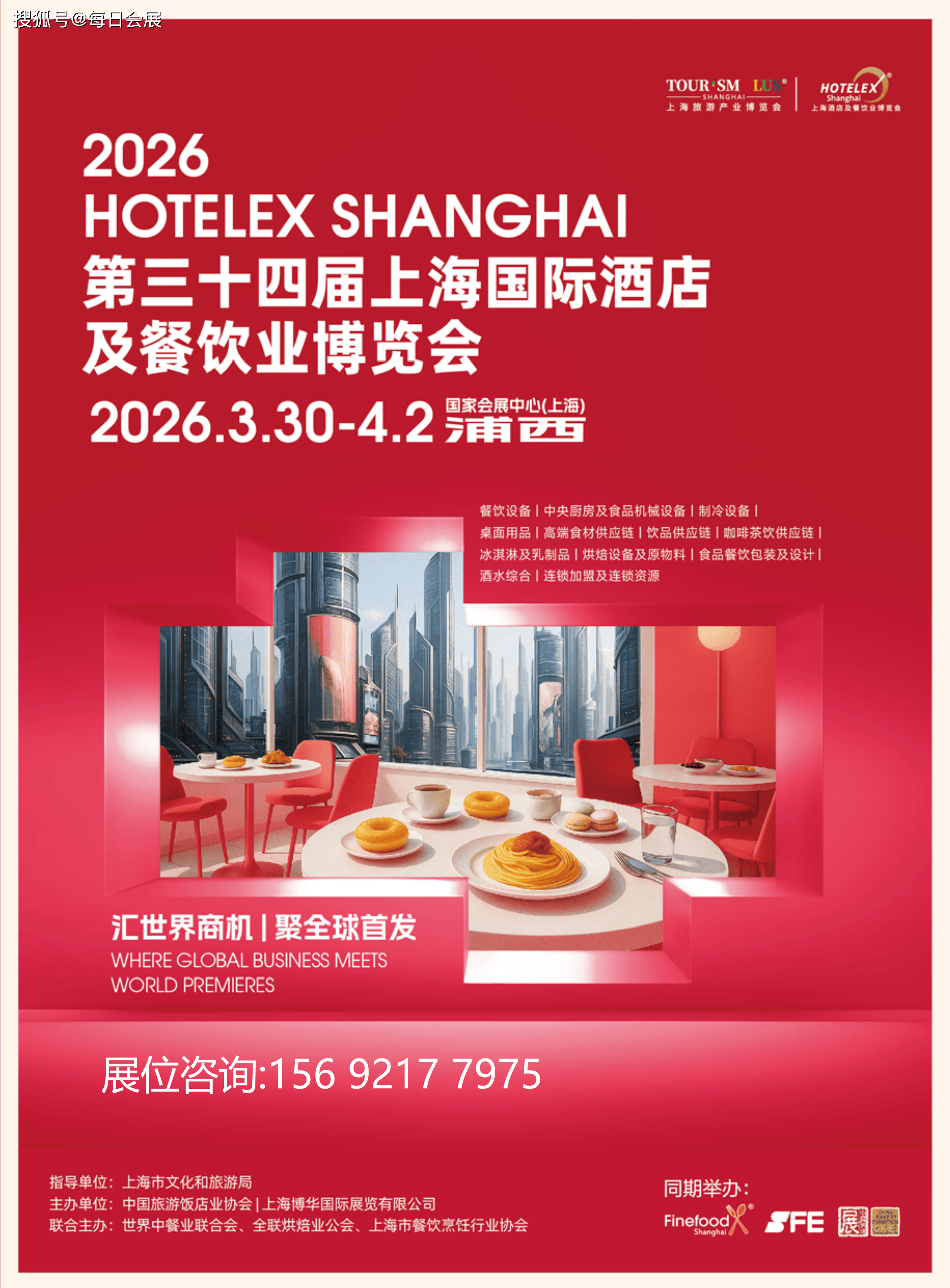 搜狐号の每日会展 2026 HOTELEX SHA 第三十四届上 及餐饮业博览; 2026.3.30-4.2 SILIERS 汇世界商机 | 聚全球首发 WHERE GLOBAL BUSINESS MEETS WORLD PREMIERES 展位咨询:156 9217 指导单位:上海市文化和旅游局 主办单位:中国旅游饭店业协会 | 上海博华国际展览有限公司 联合主办:世界中餐业联合会、全联烘焙业公会、上海市餐饮 汇聚全球餐饮力量,共筑行业未来蓝图 尊敬的行业同仁: 第三十四届上海国际酒店及餐饮业博览会(HOTELEX Shanghai)将于2026年3月30日至4月2日在上海国家会展中心隆重举办。作为亚太地区酒店及餐饮行 业规模最大、影响力最广的国际贸易盛会,HOTELEX Shanghai将继续以其独特的平台优势,为全球酒店及餐饮行业从业者打造一个更为开放和高效的交流 空间。 平台优势:深耕行业三十余载,汇聚全球买家资源 HOTELEX Shanghai博览会自1993年创办以来,已成功举办33届。展会依托主办方上海博华国际展览有限公司三十余年的资源积淀,精准触达行业核心买 家。 2025年展会吸引了284 ...