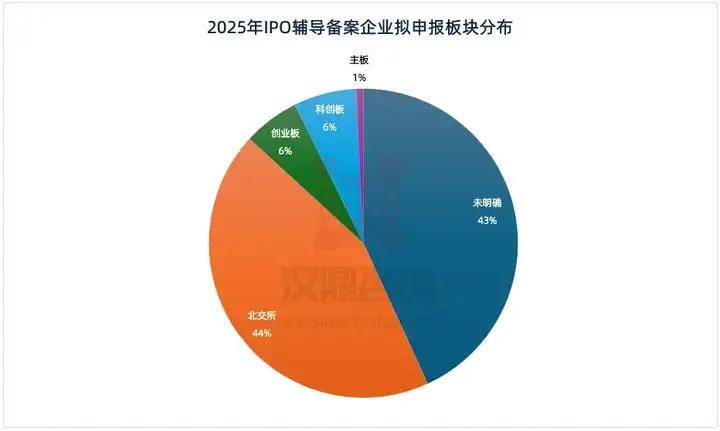 2025年,IPO市场在持续强调支持科技创新,以及科创板、创业板皆启动未盈利企业上市标准的背景 下,"包容性"、"硬科技"成为这一年的关键词,大额募资项目涌现。与此同时,北交所成为项目数量 的"主力军"。 为更清晰梳理2025年IPO市场各环节相较前一年的变化,汉鼎咨询在本篇中梳理了辅导备案、新增受 理、上会审核、注册生效多个环节的数据,并针对板块分布、所属行业、受理到注册生效时间间隔等维 度进行分析整理。概括来看: 辅导备案环节,近半数计划申报北交所,部分传统消费类行业未出现在2025年辅导备案已披露行业中。 注册生效环节,主板数量相对领先,科创板新申报企业拿批文用时明显缩短。 新增受理环节,北交所净利润规模提升,未盈利、消费类企业受理"突破",科创板首单预先审阅IPO落 地。 此外,行业方面汽车制造业企业数量及占比相对提升,或与我国新能源汽车产业高速发展,带动上下游 配套企业上市热潮相关。 上会审核环节,北交所及主板上会企业数量占比提升,整体过会率98.23%。 一、辅导备案:近半数计划申报北交所,部分行业"消失" 二、新增受理:北交所净利润规模提升,未盈利、消费类企业受理"突破" 2025年,410家企 ...