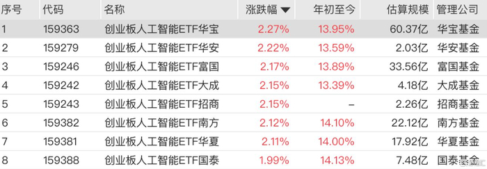 CPO概念股集体走强,创业板人工智能ETF涨超2%