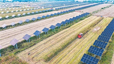 山东省乐陵市铁营镇近年来持续对11万亩盐碱地区域进行综合开发利用,采取"光伏+种植"复合模式, 形成一地多用的"农光互补"发展新格局,实现了盐碱地生态效益和经济效益的双丰收。图为日前,当地 农民在"农光互补"间作田里收获玉米。贾 鹏摄(人民视觉) 前三季度,农业(种植业)增加值同比增长3.6%;全国夏粮早稻产量合计17825万吨,比上年增加19万 吨;猪牛羊禽肉产量7312万吨,同比增长3.8%……国家统计局日前发布的数据显示,今年前三季度, 全国农业生产形势较好,畜牧业平稳增长,农业经济形势呈现稳中向好发展态势。 全年粮食有望再获丰收 仓廪实,天下安。今年以来,国家持续健全粮食生产支持政策体系,稳定落实最低收购价、补贴等各类 政策,扩大主要粮食品种完全成本保险和种植收入保险投保面积,充分调动农民种粮积极性。国家统计 局农村社会经济调查司司长魏锋华表示,秋粮生产总体稳定,全年粮食有望再获丰收。 夏粮稳产早稻增产。魏锋华介绍,夏粮生产克服旱情等不利因素影响,实现产量2994.8亿斤,比上年略 减3.1亿斤,下降0.1%,总体保持稳定。早稻产量570.3亿斤,比上年增加6.8亿斤,增长1.2%。夏粮、早 稻合计增 ...