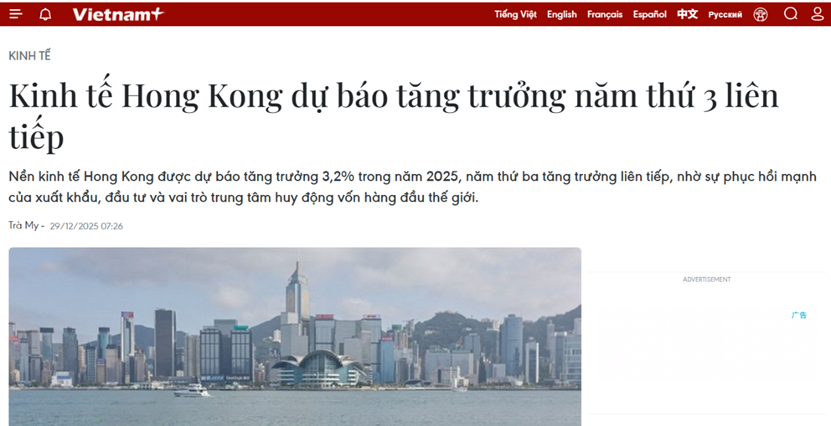 【环球网财经综合报道】日前,香港特区政府财政司司长陈茂波发布随笔《昂首迈向新一年》称,估计今年香港经济 增长将加速至3.2%,略高于年初时的预测。展望明年,香港经济可望保持良好的势头。 陈茂波还提到,2026年香港将持续巩固提升在金融市场的优势领域,包括提升股市竞争力,吸引更多来自东南亚、中 东,以至全球南方等不同地方的优质公司来港上市。同时,亦要丰富香港金融市场的多元面向,包括加速发展固定收 益及货币市场、绿色金融、金融科技,以至积极开拓包括大宗商品贸易和国际黄金交易等新机遇。 另据Wind数据显示,2025年以来,A股公司赴港上市热情持续升温,"A+H"双重上市模式迎来爆发式增长。Wind数据 显示,截至12月28日,年内已有19家A股公司成功登陆港股资本市场,较2024年的3家同比激增533%,合计募资占港 股新股募资总额的比重超50%。 越南通讯社发文称,香港作为"国际资本门户"的地位继续得到巩固,截至2025年12月中旬,通过首次公开募股 (IPO)筹集的总资本已突破2700亿港元,使这一特别行政区在全球IPO排行榜上跃居首位。除了金融市场,贸易和投 资活动也录得了积极信号。 ...