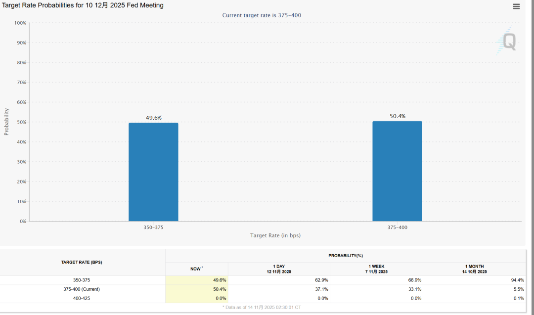 美联储12月降息预期骤变 大家好,关注一下美联储降息的消息,市场预期,非常不明朗。 降息预期骤变 美联储官员对政策前景的谨慎表态促使交易员减少了对12月降息的押注,降息概率已跌破50%。不到一个月前,市场几乎已经完全消化了降息25个基点的 预期。 许多交易员指出,美联储12月再次降息的可能性正在降低,这很可能是引发抛售潮的导火索。截至发稿,欧洲股市全线跳水,美股盘前三大指数大幅下 挫。 明尼阿波利斯联邦储备银行行长尼尔·卡什卡利表示,他并不支持美联储上一次的降息决定,不过对于12月货币政策会议的最佳行动方案,他目前仍未下 定决心。 卡什卡利说,此后公布的各项数据显示,经济基本是"延续此前的情况"。对于即将到来的12月的利率决议,他表示,"按后续数据的走向,我可以为降息 做出一套理据,也可以为按兵不动做出一套理据,我们还得再看"。 随着这番表态,卡什卡利加入了近期一批对12月是否有必要再次降息持怀疑态度、甚至明确反对降息的美联储官员行列。目前尚不清楚,这些人能否说服 足够多的联邦公开市场委员会(FOMC)有投票权的成员,因为仍有不少决策者对劳动力市场疲软更为担忧。 这位明尼阿波利斯联储行长今年并无利率决策投票权 ...