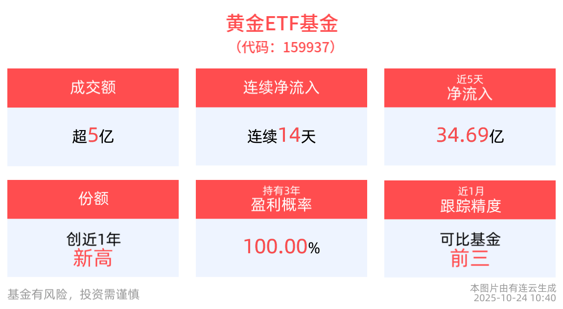 金价止跌反弹,重回4100美元,黄金ETF基金(159937)连续14日“吸金”合计73.55亿元