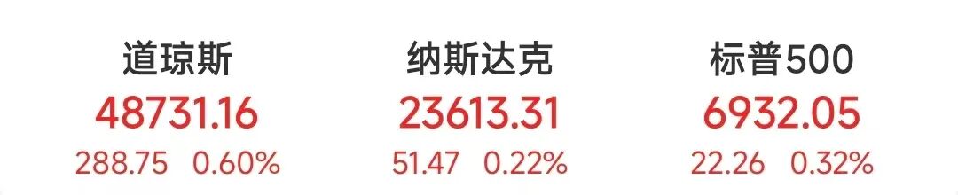 美股市场表现 - 美股三大指数于12月24日收高 道指涨288.75点或0.60%至48731.16点 纳指涨51.47点或0.22%至23613.31点 标普500指数涨22.26点或0.32%至6932.05点 [1] - 标普500指数盘中最高上涨至6937.32点 创下盘中历史新高 [1][3] - 投资者期待年末的“圣诞老人行情” 该行情时段从2025年12月24日开盘持续至2026年1月5日 [4] 宏观经济数据 - 美国上周首次申请失业救济人数减少1万人至21.4万人 低于彭博经济学家调查的预期中值22.4万人 [1][2][6] - 美国第三季度GDP增速为4.3% 超过道琼斯调查预期的3.2% [4] - 根据CME FedWatch工具 联邦基金期货交易显示市场预计到2026年底将有两次降息 [5] 半导体与科技行业动态 - 有报道称英伟达已叫停一项采用英特尔18A制程工艺生产高端芯片的测试 [1][7][8] - 受该消息影响 英伟达股价收跌0.32% 成交额为122.02亿美元 英特尔股价也走低 [8] - 大型科技股多数上涨 甲骨文涨超1% 台积电、苹果、Meta、微软等小幅上涨 特斯拉、谷歌-A、英伟达、英特尔小幅下跌 [8] 其他板块与中概股表现 - 金融股多数上涨 花旗集团、摩根士丹利、高盛涨超1% 摩根大通、美国银行等小幅上涨 [8] - 能源股多数下跌 美国能源跌超3% 康菲石油跌超1% 埃克森美孚、雪佛龙等小幅下跌 [9] - 热门中概股涨跌不一 纳斯达克中国金龙指数收跌0.07% 拼多多涨超1% 金山云、爱奇艺、虎牙跌超1% 阿里巴巴、百度等小幅下跌 [9]