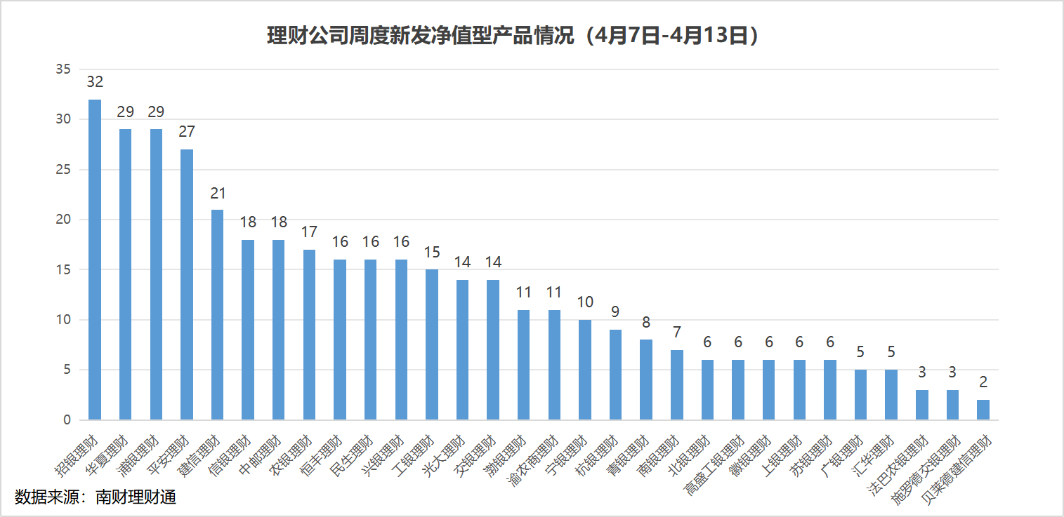 市场回顾 - 债市方面,资金价格均衡偏松,4月11日DR007加权均价降至1.65%,10年期国债收益率收至1.66% [2] - 股市方面,受“对等关税”影响,上周A股震荡下行,创业板指、中证1000指数、深证成指周跌幅分别为6.73%、5.5%和5.13% [2] - 板块方面,农林牧渔、商贸零售、国防军工周涨幅居前 [2] 理财产品破净情况 - 截至2025年4月13日,银行理财综合破净率收至1.07%,固定收益类公募理财破净率仅为0.43% [3] - 权益类、混合类理财破净率较此前一周走高,分别为63.16%和9.9%,商品及金融衍生品类理财破净率为33.33% [3] - 各期限人民币固定收益类理财破净率均降至1%以下,其中3年以上期限产品破净率降至零,1个月以内投资周期产品破净率仅为0.1% [3] 理财产品新发情况 - 上周(4月7日—4月13日),30家理财公司合计发行了386只理财产品,股份行理财公司发行产品数量位居前三 [4] - 新发产品仍以R2(中低风险)、封闭式净值型、固收类公募型产品为主,混合类产品发行11只,权益类新发产品仅1只 [6] - 上周新发固收类产品业绩比较基准均值为2.70%,环比上升0.07个百分点,不同期限产品定价均在3%以下 [6] - 理财公司在产品结构上更加保守,含权产品布局以“固收+”为主,提高混合类和权益类产品规模还需久久为功 [6] 理财产品收益情况 - 上周仅固定收益类理财平均收益率为正,近一周平均净值增长率为0.0582% [9] - 混合类、权益类和商品及金融衍生品类理财近一周平均净值增长率分别为-0.6043%、-4.4721%、-6.7491% [9] - 固定收益类产品中,6~12个月期限产品周度收益率最高,近一周净值增长率均值为0.0733% [9] - 现金类产品中,人民币、美元、澳元产品周内七日年化收益率均值为1.577%、4.001%和3.34% [9] - 15.19%的人民币公募理财产品近一周收益为负,其中固定收益类、混合类、权益类、商品及金融衍生品类负收益产品比例分别为11.41%、73.79%、91.67%和100% [12] - 固定收益类产品中,2~3年期限和3年以上期限近一周负收益产品占比超20%,分别为22.82%和34.39% [12] 行业热点与机构动态 - 深交所表示正在制定服务中长期资金入市的工作方案,将落地便利银行理财、保险资管参与新股发行、股票定增的政策,并完善ETF大宗交易和盘后交易等机制 [15] - 多家理财公司(苏银理财、中邮理财、徽银理财、交银理财、浦银理财、北银理财)表示加强ETF投资,以支持资本市场发展,其中浦银理财表示投向的ETF聚焦科技金融、绿色金融等相关领域 [16] - 中银理财表示将积极寻找机会进行权益资产配置,重点投向新质生产力领域和内需板块,并计划通过布局指数策略、指数增强策略等各类含权类理财产品进一步支持资本市场发展 [16] - 兴银理财、杭银理财自购旗下理财产品,杭银理财追加投资旗下含权型理财产品超2亿元,兴银理财拟近期自购公司所管理的含权理财产品5000万元 [16]