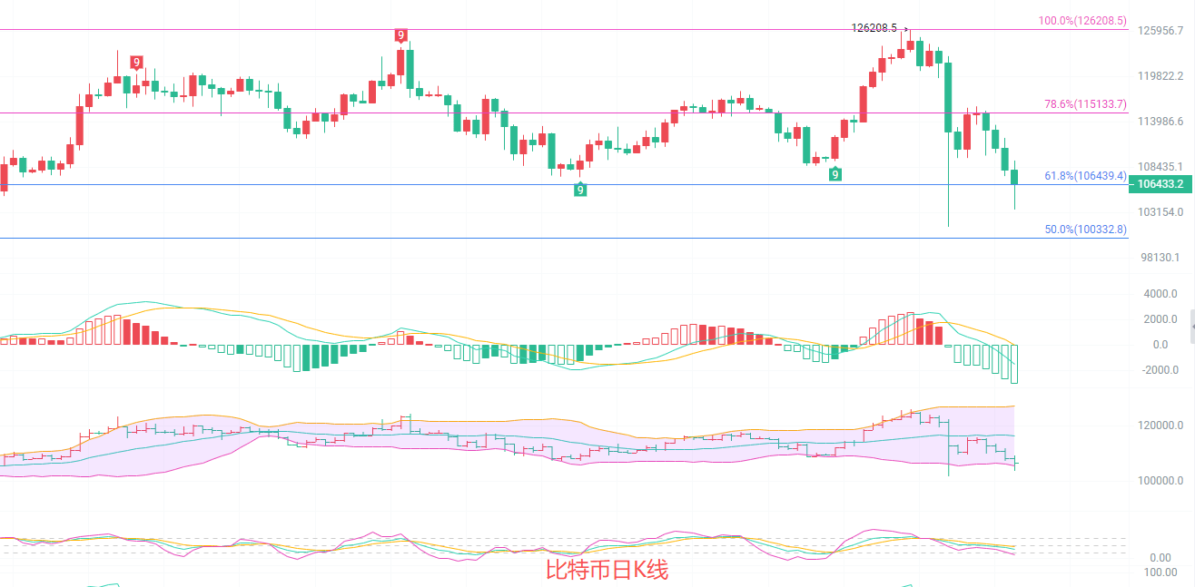 比特币当前行情分析 - 比特币现价为106,250美元,日K线最高触及109,200美元,最低下探103,470美元 [1][3] - 交易策略为在106,400美元止盈三分之一空头仓位,并计划在回调后加仓做空 [3] - 四小时K线显示压力位连续五次下压,支撑位下压四次,价格在0.786一线横盘 [5] 技术指标信号 - EMA趋势指标出现向下收缩及双线死叉,MACD连续缩量增筹,DIF和DEA已跌破0轴线 [3] - 布林带下轨106,500美元失守,呈现向下开口扩散的趋势 [3] - 四小时级别EMA趋势指标结束交替扩散并开始拉开身位,MACD出现缩量底部背离,显示进一步下探动能 [5] 短线交易策略 - 做多(北上)试仓区间为102,000至101,500美元,止损设在101,000美元,目标看102,500至104,500美元 [5] - 做空(南下)试仓区间为107,000至107,500美元,止损设在108,000美元,目标看105,000至104,500美元 [5] - 建议所有操作设置500点止损,破关键支撑或压力位时应止损,避免抗单 [5] 宏观市场环境 - 美国前总统(懂王)再次发文引发关税战,地缘政治紧张局势升级 [1] - 有市场观点认为当前市场可能从牛熊市转为“猴市”,形容市场波动加剧 [1]