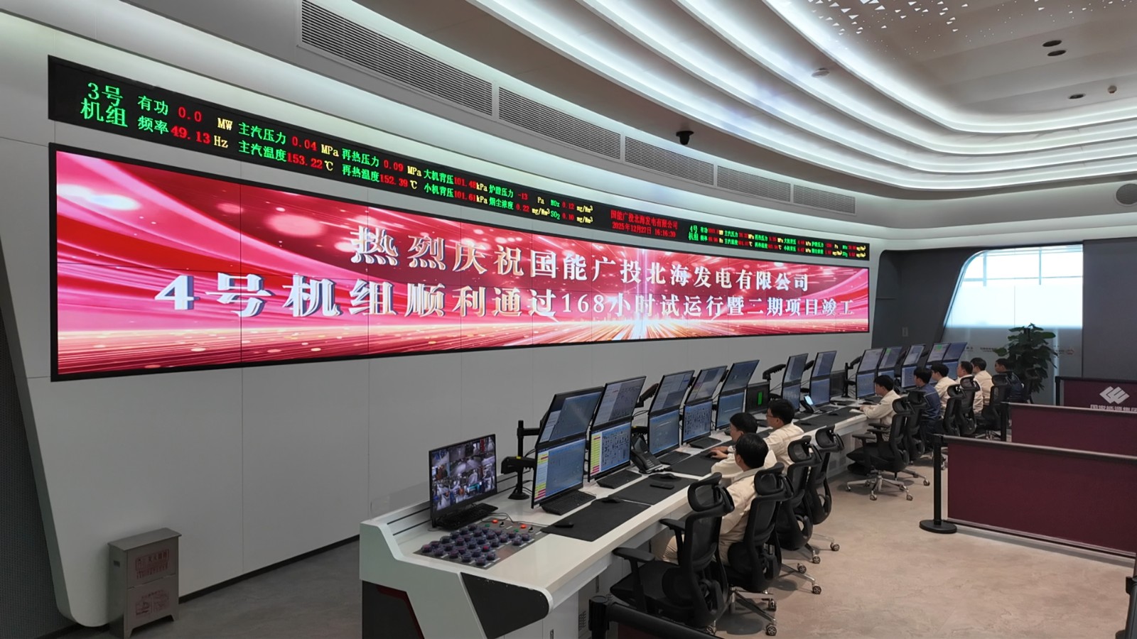 图为北海"电港储运"一体化能源基地全景图 图为4号机组顺利通过168小时试运行 12月27日,广西北海公司4号机组经过168小时满负荷试运行后,各项性能指标均达到设计要求,正式投入商业运行。至此,北海公司一期、二期4台百万千 瓦发电机组全部投产,总装机容量达400万千瓦。 随着4号机组投运,北海"电港储运"一体化能源基地建成,两座10万吨级通用码头可接卸全球煤炭,配套年储运1000万吨级储煤场,形成"码头卸煤—基地储 煤—机组燃煤"的完整链条,为广西建设国家综合能源安全保障区,推进"一区两地一园一通道"建设,高水平共建西部陆海新通道提供坚实能源支撑。 作为广西能源发展"十四五"规划的重点项目,北海公司深入践行"四个革命、一个合作"能源安全新战略,聚焦新型电力系统建设需求,一、二期分别建设两 台100万千瓦超超临界二次再热燃煤机组和两台100万千瓦超超临界一次再热燃煤机组。其中二期投产的3、4号机组是广西区域同类型机组中参数等级最优、 排放指标最低、能耗指标最优、调峰能力最强、变负荷速率最快的燃煤机组,是广西区域最大的支撑性、调节性电源,为电网安全稳定和新型电力系统建设 提供坚强保障。 图为厂区地面光伏项目 同 ...