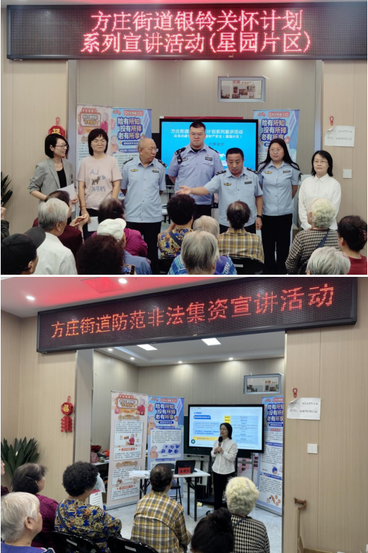 活动概述 - 工银瑞信投教基地于9月19日在丰台区发改委指导下,携手方庄派出所、市场监管执法所、区市场局等多部门走进方庄街道办事处开展“银龄关怀计划”活动 [1] - 活动旨在凝聚市场保护合力,共同保障居民合法权益,筑牢社区金融安全 [1] - 活动属于金融教育宣传周期间的一部分 [1] 活动内容与形式 - 现场设立“守护钱袋子”老年人专题系列海报,由投教基地讲师为社区居民准备图文并茂、干货满满的防非知识讲座 [1] - 讲座聚焦涉老非法金融活动常见形式,深入剖析“以房养老”、“低价旅游”、“直播间打卡免费领礼品”、“网络交友”等典型案例 [1] - 活动揭露不法分子利用老年人信息差、寻求养老保障等心理实施诈骗的套路,提醒居民不要轻信他人,保护好个人财产信息 [1] - 投教讲师为居民普及新时代养老背景下个人养老服务的丰富多样性,倡导“科学规划、多元储备”的养老理念,引导老年群体树立理性养老规划意识 [1] - 现场发放大量精心制作的防非、反洗钱主题宣传资料,资料以图文并茂、漫画等生动形式呈现金融知识要点 [3] 活动效果与反馈 - 居民表示通过活动对非法金融活动有了更深刻的认识,将在生活中提高警惕,并会将学到的知识分享给身边更多人 [3] - 活动形式使金融知识触手可及,既方便居民理解,又便于传阅分享 [3] 公司战略与承诺 - 保护投资者合法权益是坚持金融工作政治性、人民性的直接体现 [3] - 公司秉持金融为民理念,将持续深化与政府、街道等多方力量合作,凝聚投资者保护合力 [3] - 公司致力于助力守住群众钱袋子,护好幸福家,诠释普惠金融担当,为营造健康稳定的金融环境、助力群众美好幸福生活贡献投教力量 [3]