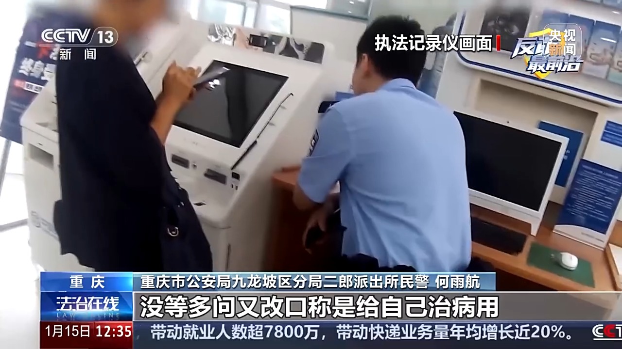 法治在线丨素未谋面却帮取50万 说法漏洞百出实为电诈取现工具人 前不久,重庆警方接到一条紧急预警,辖区内一家银行柜台有人正准备支取50万元大额现金,疑似涉诈。民警立即赶赴现 场。取款人李女士面对询问,说辞前后矛盾。一场与诈骗分子抢时间的资金拦截战就此打响,执法记录仪记录下了全程关键 画面。 民警:没有结婚你就帮他取钱? 李女士:这是他的钱,他转给我的钱,我一分钱都没有在里面,他从广州打回来的,这是他的钱。 民警:你取钱这事问题有点大,你说不清楚这件事情,装修或者看病,都可以网上支付。 重庆市公安局九龙坡区分局二郎派出所民警 何雨航:当事人起初说取钱是用于房屋装修,没等多问又改口称是给自己治病 用。我当即追问装修看病都能电子支付,为啥非要取这么多现金,当事人支支吾吾半天,又说其实是帮老公取的,还说对方 身份特殊隐蔽无法查询。 民警随即核查相关信息,发现李女士对资金来源的说法漏洞百出,一会儿称转账人是其男友的母亲,一会儿又改口说是男友 的表姐。民警当即指出,李女士的行为可能涉嫌掩饰隐瞒犯罪所得。 民警:怎么又是他表姐了呢,刚刚又说是他母亲,现在又是他的表姐,你不觉得这里面有很大的问题吗? 李女士:这不是我的钱。 ...