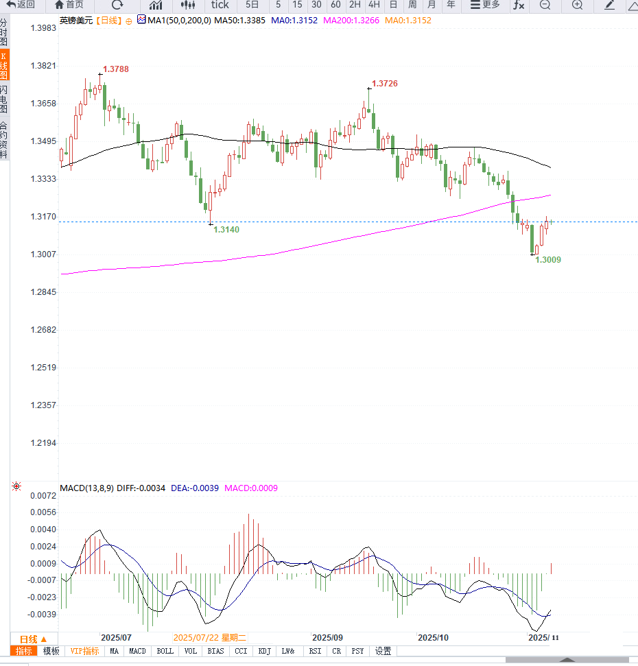 从技术层面看,英镑兑美元目前位于1.3150附近,短期支撑位在1.3120左右,阻力位则在1.3200附近。 整体走势短期偏弱,但美元波动以及英国央行的政策信号仍可能带来反弹机会。投资者可关注英国央行官员ClareLombardelli的最新 表态,以及美国经济数据和政府预算问题的后续进展。 根据CMEFedWatch工具显示,目前市场预计12月美联储降息25个基点的概率接近66%。这类政策预期可能使美元出现短期波动,但 整体来看美元仍保持相对强势。 再看英镑,英国央行在上周决定继续将利率维持在4.0%不变。由于英国政府秋季预算及通胀走势尚不明确,央行选择保持观望。 行长AndrewBailey表示,未来是否降息将视通胀情况而定。目前市场预期圣诞节前英国央行可能有一次降息,这种谨慎的政策预期 限制了英镑近期的反弹动力。 周一亚洲早盘时段,英镑兑美元回落至1.3150左右,结束了此前连续三天的回升。推动这一走势的主要因素是美元走强,而美元走 强与美国政府可能很快结束停摆有关。 有消息显示,中间派参议员已表态支持一项预算协议,将恢复部分联邦机构的运行,并支付联邦雇员薪资。 根据协议内容,一部分政府部门将获得预算至 ...