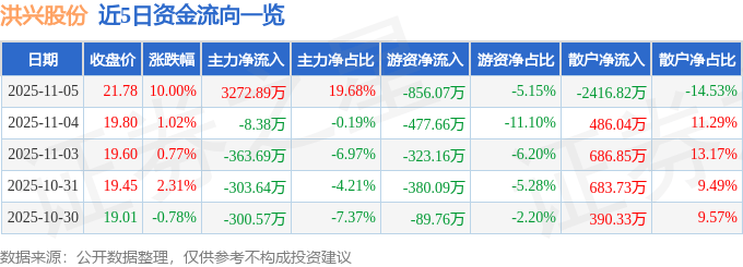证券之星消息,洪兴股份11月5日涨停收盘,收盘价21.78元。该股于14点21分涨停,未打开涨停,截止 收盘封单资金为5097.52万元,占其流通市值2.44%。 该股为IP经济/谷子经济,跨境电商,纺织服装概念热股,当日IP经济/谷子经济概念上涨0.64%,跨境电 商概念上涨0.52%,纺织服装概念上涨0.46%。 以上内容为证券之星据公开信息整理,由AI算法生成(网信算备310104345710301240019号),不构成 投资建议。 今日洪兴股份涨停的可能因素有:首先,公司近期完成治理结构优化,修订25项制度并设立审计委员 会,符合新《公司法》要求,治理规范性提升。其次,线上渠道优势显著,线上销售占比达73.2%,在 消费线上化趋势下持续扩大市场份额。第三,研发投入持续加码,2023年研发费用率提升至2.3%,推 动产品竞争力增强。此外,募集资金使用效率较高,半年度使用进度达95.1%,部分项目已产生5025万 元效益。尽管三季度业绩承压,但市场对其长期发展潜力及纺织服装板块的联动效应给予积极反馈。 | 日期 | | | | | 收盘价 涨跌幅 主力净流入 主力净占比 游资净点比 散户净流入 散户净占 ...