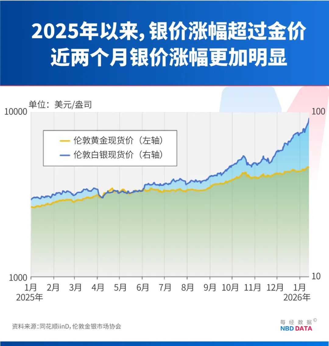 银价表现与金银比动态 - 2026年1月14日,伦敦银价突破90美元/盎司,创历史新高,伦敦金银比一度降至50.57,创13年新低[1] - 自2025年初至2026年1月,黄金与白银涨幅分别为75%和190%,白银涨幅是黄金的2.5倍,金银比从2025年最高点105腰斩至50附近[2] - 从2025年11月24日至2026年1月14日的50天内,伦敦银价从50.04美元/盎司上涨至91.10美元/盎司,涨幅达82.05%[3] 本轮金银比修复的异常特征 - 传统上金银比修复伴随美国制造业PMI回暖至荣枯线50%以上,但本轮修复时美国PMI在12月仍为47.9%,已连续10个月低于荣枯线[15] - 金银比与制造业PMI“脱轨”,表明本轮修复并非跟随传统的制造业周期逻辑[15] - 分析指出,美国制造业全球比重下降及话语权减弱,新兴市场力量及全球格局调整成为影响金银价格的新因素[17] 白银的战略属性与政策关注 - 白银在绿色能源转型和数字化转型中扮演“下一代金属”核心角色,因其拥有所有金属中最高的导电性,对太阳能、数据中心、电动汽车及AI集成电子产品至关重要[18] - 中国商务部文件将白银与钨、锑并列称为“稀有金属”,引发市场对出口管控升级的遐想,但业内人士认为相关措施是对过往管理的延续而非新增管制[18][19] - 分析认为,白银在光伏、新能源车及AI等产业中应用增加,使其战略价值凸显,产业端需求预期对市场影响可能更大[19] 库存变动与价格驱动逻辑 - 2025年,因关税预期引发全球“抢银大战”,导致伦敦金库白银库存骤减而COMEX库存飙升,随后套利活动使伦敦库存在10月份增加近1700吨[20] - 英国从2025年1月的白银净出口超2000吨,转变为11月的净进口1650吨[20] - 2022年全球白银需求量逼近4万吨,供给仅3.2万吨,供需缺口导致伦敦金库白银库存当年减少近1万吨[26] - 2025年伦敦金库白银库存最紧张时仅约2.2万吨,而全球最大白银ETF持仓量已超过1.6万吨[27] 供需基本面分析 - 供给端自2015年后转向刚性,近几年全球白银年供给量长期维持在30000~33000吨[26] - 需求端自2021年发生转折,因光伏产业等兴起出现供不应求并持续至今,2024年全球光伏用银达6146.05吨,较2022年增长约67%[26][33] - 2025年中国光伏电池产量已超过6亿千瓦,年产量或再创新高,可能进一步推高全球白银工业需求量[33] - 工业需求占白银总需求六成左右,光伏用银是近几年需求增长最大变量[33] 历史对比与市场展望 - 1970-1980年贵金属牛市中,银价涨幅是金价的1.13倍;2001-2011年牛市中为1.36倍;而2019年以来的本轮牛市中,银价涨幅是金价的1.89倍,远超前两轮[40] - 当前市场将行情与上世纪70年代类比,特征包括“滞胀”、逆全球化与美元信用危机[41][42] - 东吴期货预计当前银价运行区间可能维持在80~100美元/盎司[40] - 华泰期货研究院认为未来金银比大概率将脱离此前高位区间,在40~80的中枢范围内呈现震荡格局[40]