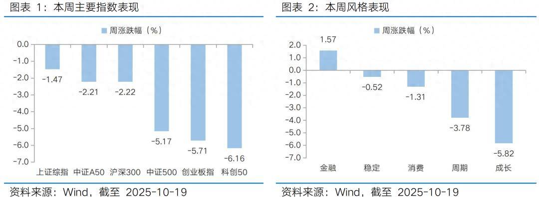Part 2:港股市场分析 Part 3:下周宏观事件关注 本周A股市场在外部贸易摩擦等多重因素影响下表现不佳,主要宽基指数集体收跌,银行、煤炭等红利板块由于防御属性和前期滞涨而相对抗跌,前期热 门的科技成长板块则调整明显。从宽基指数看,本周上证指数下跌1.47%,创业板指下跌5.71%,沪深300下跌2.22%,中证500下跌5.17%,中证A50下跌 2.21%,科创50下跌6.16%。风格上,金融、稳定表现相对较好,成长、周期表现较差。从申万一级行业看,表现相对靠前的是银行(4.89%)、煤炭 (4.17%)、食品饮料(0.86%)、交通运输(0.37%)、纺织服饰(-0.31%);表现相对靠后的是电子(-7.14%)、传媒(-6.27%)、汽车(-5.99%)、 通信(-5.92%)、机械设备(-5.84%)。从Wind热门概念板块来看,表现相对靠前的是银行(5.41%)、保险(5.13%)、央企银行(4.72%)、央企煤炭 (4.64%)、海南自贸港(4.54%);表现相对靠后的是化学原料(-9.42%)、消费电子代工(-9.08%)、炒股软件(-8.85%)、HBM(-8.84%)、半导 体设备( ...