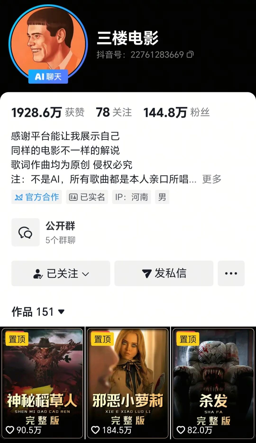 彼时,说唱影视解说正是影视内容赛道的创新形态,更是兼具传播力与质感的精品内容代表。然而,随着AI工具的爆发式发展与短视频生态 的成熟,在经历约莫一年多的黄金窗口期后,说唱影视解说迅速沦为可拆解、可复制的起号模版,多数内容已偏离创作本质,沦为单纯的流量 收割工具。 打开抖音搜索「rap 电影解说」,相关内容播放量已突破19.7亿次。评论区里充满了「听完还想再刷一遍正片」「比干巴巴的解说有意思多了」等留言。 当下的短视频平台,以说唱形式解读影视作品的内容还在增长。回溯赛道本身的发展,早期创作者多以搞笑吐槽切入,用夸张的押韵解构恐怖片、惊悚片 的紧张感。2025年初 ,@三楼电影靠一首《杀人的小沙发》出圈,把小众惊悚片解说做到700万播放。如今,它也进化出多元形态,既有@花町馆长 这样 靠细腻文案与情感共鸣取胜的内容派,也有@艺雪影视 这类靠高频更新与标准化内容崛起的头部账号,多条视频播放破百万,还不乏如@顽疾猫说电影 聚焦电视剧、@说唱国漫 专攻国漫的细分玩家。 平台对新颖形式内容的流量倾斜下,当下说唱解说的播放量依然普遍较高,普通账号单条播放多在5万-20万,头部账号爆款可达千万级。尤其是近期AI技 术的介入, ...