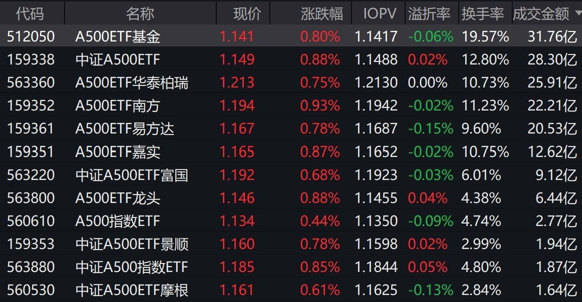 市场早盘震荡走强,中证A500指数上涨0.97%,3只中证A500相关ETF成交额超25亿元