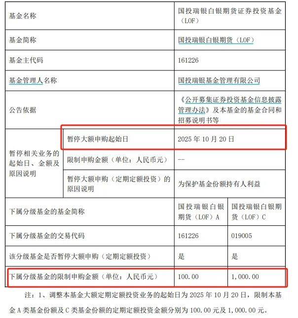 贵金属市场行情 - 近期贵金属价格持续上涨,现货白银价格迎来历史性突破,国际现货银价突破每盎司50美元关口 [1][3] - 今年以来白银价格涨幅已超越黄金 [2][3] - 贵金属成为市场不确定性加剧背景下表现突出的避险资产类别之一 [9] 白银市场供需与流动性 - 伦敦现货白银市场经历严重流动性紧张,成为推动银价飙升的关键原因 [3] - 伦敦白银库存自2021年年中以来下降约三分之一,可自由流通库存仅剩约2亿盎司,较2019年峰值时期的约8.5亿盎司锐减约75% [7] - 库存下降受矿产供应不足、工业需求增长以及贵金属流向美国以规避潜在关税风险等因素共同驱动 [5] - 流动性紧张导致空头被迫平仓,引发逼空行情,进一步推高白银买盘和价格 [7] 白银工业与投资需求 - 工业用途成为白银需求最大来源,花旗集团预测今年工业需求将达到4.3亿盎司 [9] - 太阳能行业需求约为2.99亿盎司,是可再生能源领域驱动白银需求增长的重要体现 [9] - 白银兼具价值储藏和工业用途,实物投资等也是需求组成部分 [9] 市场观点与基金动态 - 行业观点认为白银正处于"补涨行情"中,仍有很大上涨空间 [9] - 高盛指出流动性紧缩是近期银价飙升的重要推手,但预计这种紧张是暂时的,因价格上涨将刺激白银回流伦敦 [9] - 国内市场投资热度同步升温,国投瑞银白银期货基金作为全市场唯一的白银期货基金,在10月20日将A类和C类份额单日申购限额分别大幅调降至100元和1000元 [1] - 该基金规模为30.14亿元,此次限购是继10月15日首次限购后仅隔三个交易日的再度升级 [1]