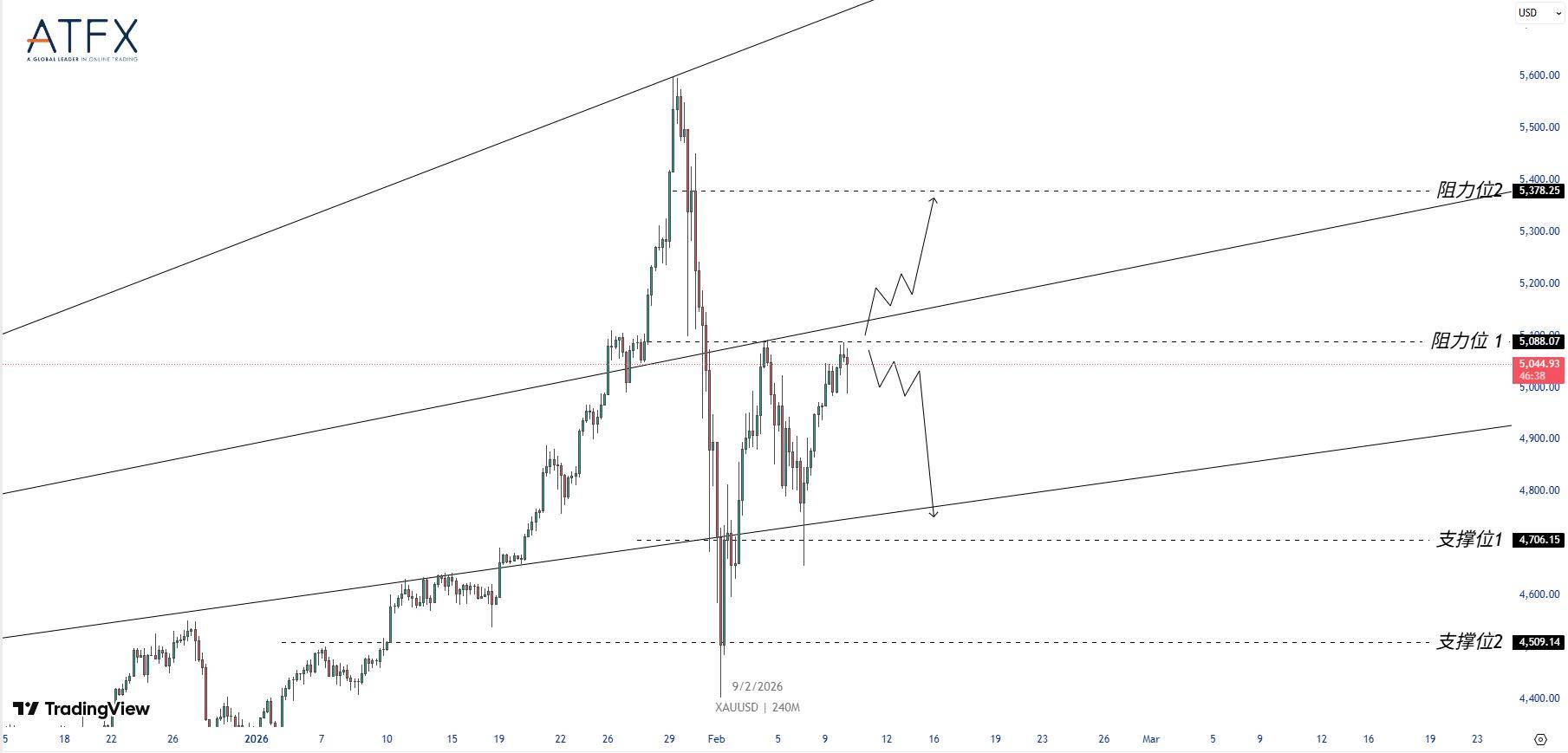 本周黄金市场主题与驱动因素 - 市场核心观点为“降息预期提供底部支撑、资金撤离削弱上行动能”,金价在基本面与资金面相互对冲下更可能高位震荡,等待关键数据给出方向 [1] - 地缘政治不确定性未彻底消散,避险需求在消息反复中时强时弱 [1] - 美国宏观数据进入集中窗口,偏弱的就业线索与回落的通胀预期强化了市场对美联储降息路径的定价,美元与实际利率预期的边际转弱为黄金提供支撑 [1] 近期市场表现与资金面动态 - 上周黄金在急跌后出现强势修复,反映避险情绪与低吸买盘在关键位置依然活跃 [1] - 当前波动率上升、保证金要求上调、风险价值约束收紧,导致部分管理资金账户倾向于逢反弹降低杠杆与净多头敞口,贵金属整体呈现“去风险、减仓位”特征 [1] - 资金面的压制导致黄金即使有基本面利好,也更容易先走整理、反复拉锯,而非直接形成持续单边上攻 [1] 本周关键数据与潜在影响 - 延迟公布的非农就业报告与随后的通胀数据将直接影响市场对政策路径的再定价,是决定突破方向的关键 [1] - 若数据验证就业继续降温且通胀不构成再上行压力,降息预期有望升温、美元走弱概率上升,黄金更易获得趋势性推动 [1] - 若数据偏强导致降息押注降温,资金去杠杆可能再度放大金价的回撤幅度 [1] 黄金技术结构分析 - 黄金目前仍运行在上升通道框架内,价格围绕5000美元上方震荡 [3] - 上方首要阻力位在5,088附近,若被有效突破并站稳,意味着多头重新掌握节奏,通道上沿目标指向5,378附近,更可能呈现“阶梯式抬升+回踩确认”的推进方式 [3] - 下方首要支撑关注4,706附近,若市场风险偏好回升或去杠杆加速,不排除进一步回测4,509附近支撑的可能 [3] 综合市场展望 - 黄金中期结构仍偏多,但短期处于“基本面托底、资金面压制”的平衡区间 [3] - 在关键数据落地前,金价大概率围绕5000关口反复震荡 [3] - 数据落地后,5,088能否突破或站稳以及4,706能否守住,将成为判断黄金进入上行趋势延伸或回撤修正阶段的核心信号 [3]