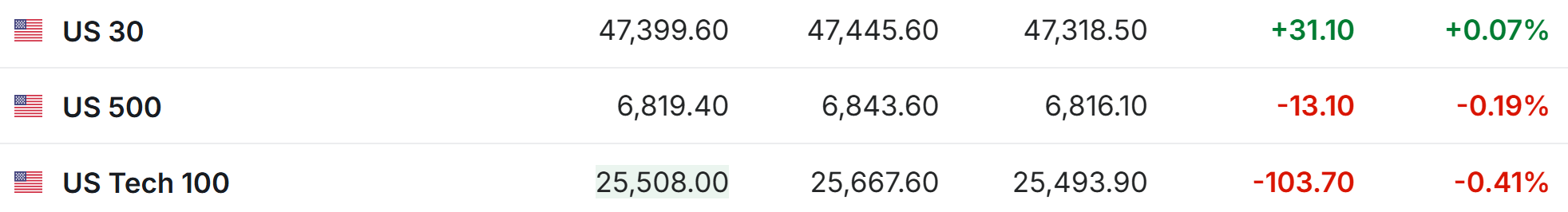 1. 11月11日(周二)美股盘前,美股三大股指期货涨跌不一。截至发稿,道指期货跌0.07%,标普500指数期货涨0.19%,纳指期货涨0.41%。 | 2. 截至发稿,德国DAX指数跌0.02%,英国富时100指数涨0.82%,法国CAC40指数涨0.57%,欧洲斯托克50指数涨0.36%。 | | --- | | 3. 截至发稿,WTI原油涨0.70%,报60.55美元/桶。布伦特原油涨0.76%,报64.55美元/桶。 | 市场消息 今天美国部分市场休市。受退伍军人节假期(11月11日)影响,美国债市今日休市一日,美国股市照常交易。美国API和EIA原油库存数据分别推迟至北京时间 11月13日(周四)05:30和11月14日(周五)01:00公布,敬请各位投资者留意。 美国参议院通过临时拨款法案,待众议院表决,政府停摆有望于周三结束。美国政府停摆已创下41天的历史纪录,在参议院通过一项由八名中间派民主党人 支持的临时拨款法案后,停摆有望最早于周三结束。周一,参议院以 60 比 40 的投票结果通过了《持续拨款与延期法案》,但该法案仍需共和党控制的众议 院批准。众议院议长迈克·约翰逊表示,他预计该方案将很 ...