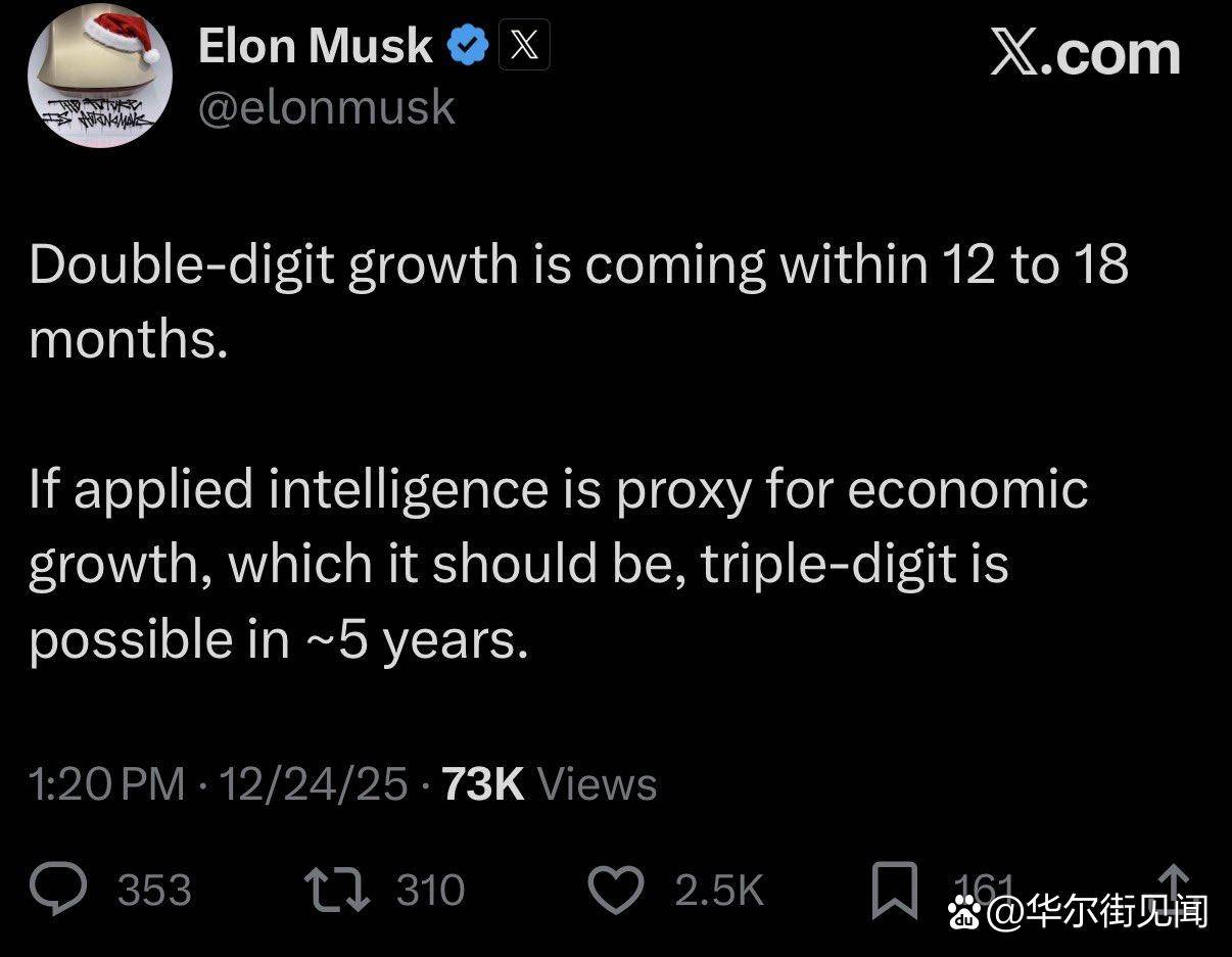 【特朗普前政府效率部DOGE顾问马斯克:AI可帮助美国GDP五年实现三位数增长】特斯拉CEO马斯克:未来12-18个月内(美国)将实现两位数(百分比)的GDP增长。若将人工智能(AI)的落地应用视为经济增长的替代指标(这理应成立),那么约五年内实现三位数增长是可能实现的。